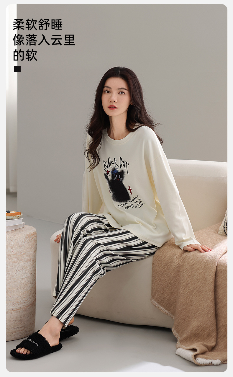 睡衣女春秋款纯棉长袖秋季2025新款大码休闲高级感秋冬全棉家居服