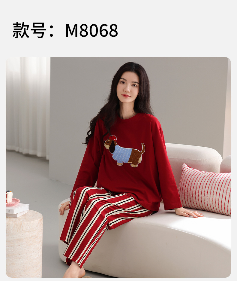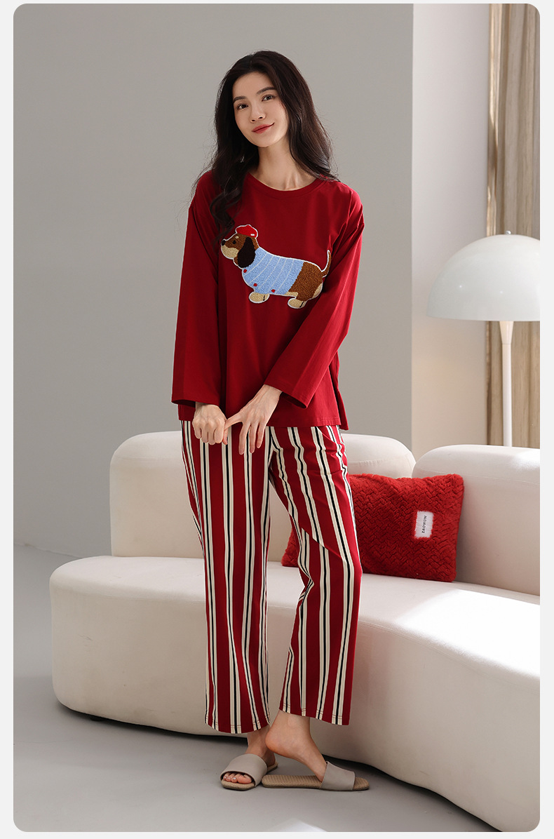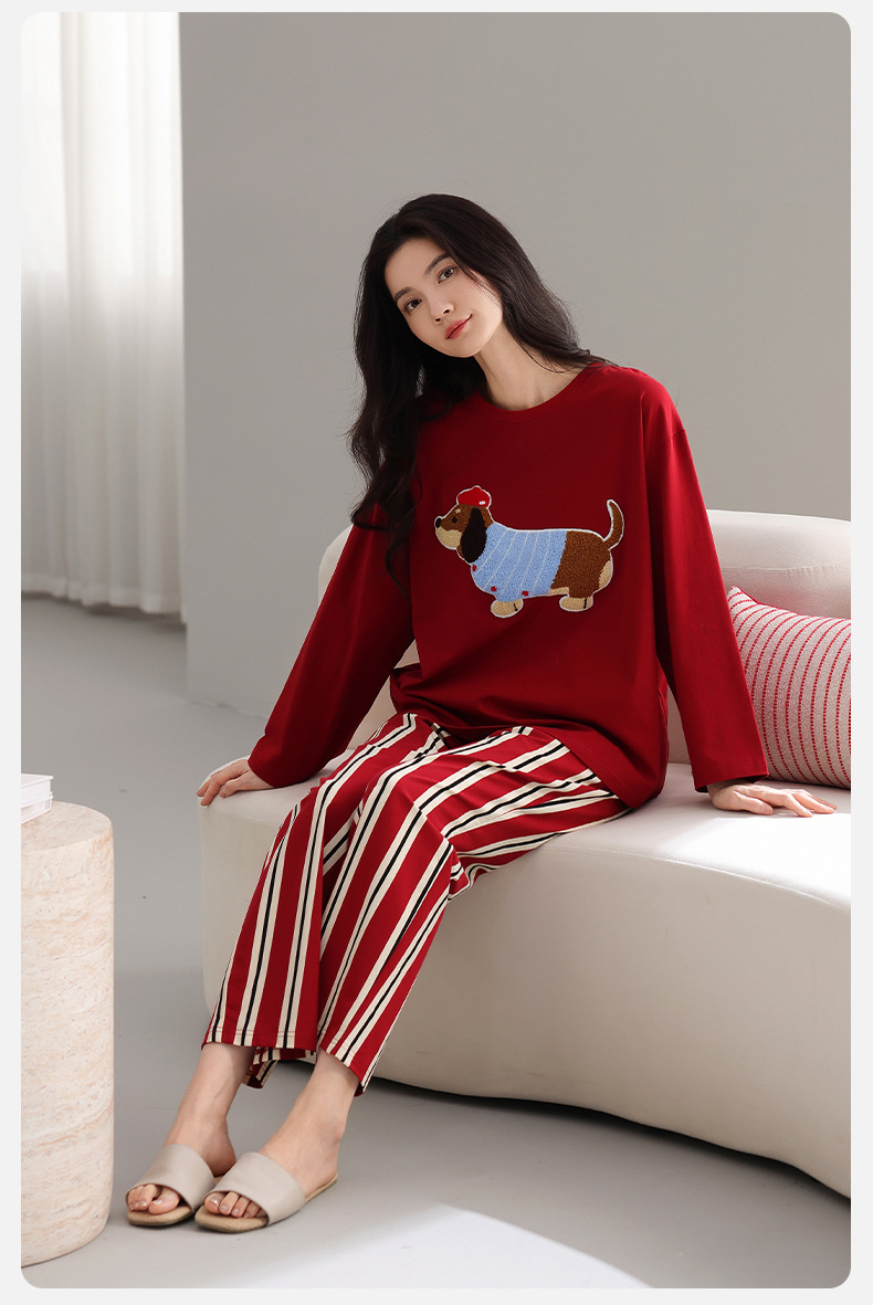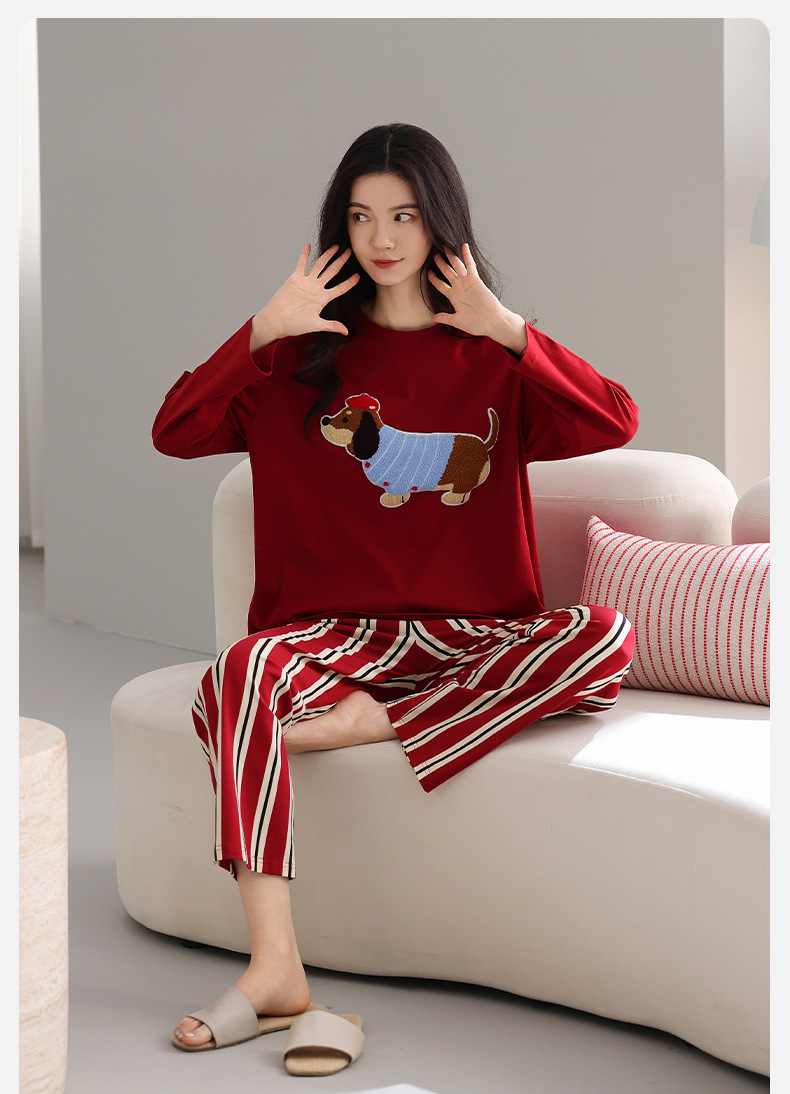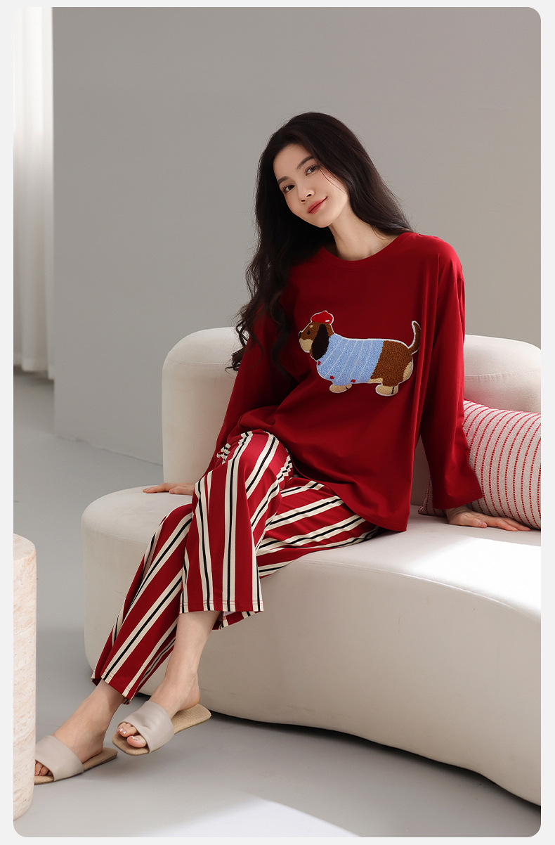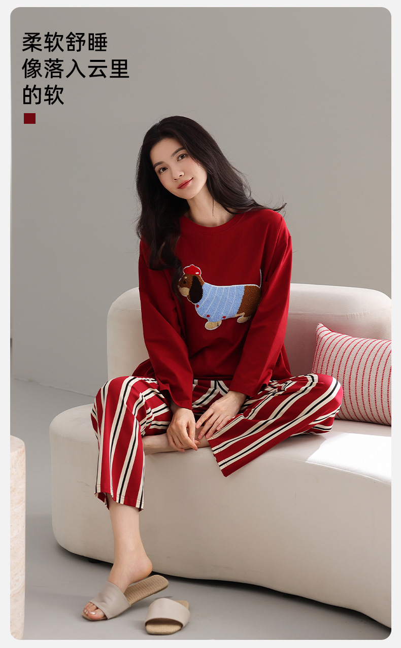 睡衣女士春秋款纯棉长袖红色本命年可外穿可爱卡通家居服全棉套装