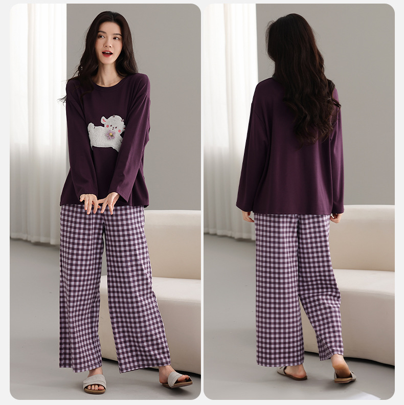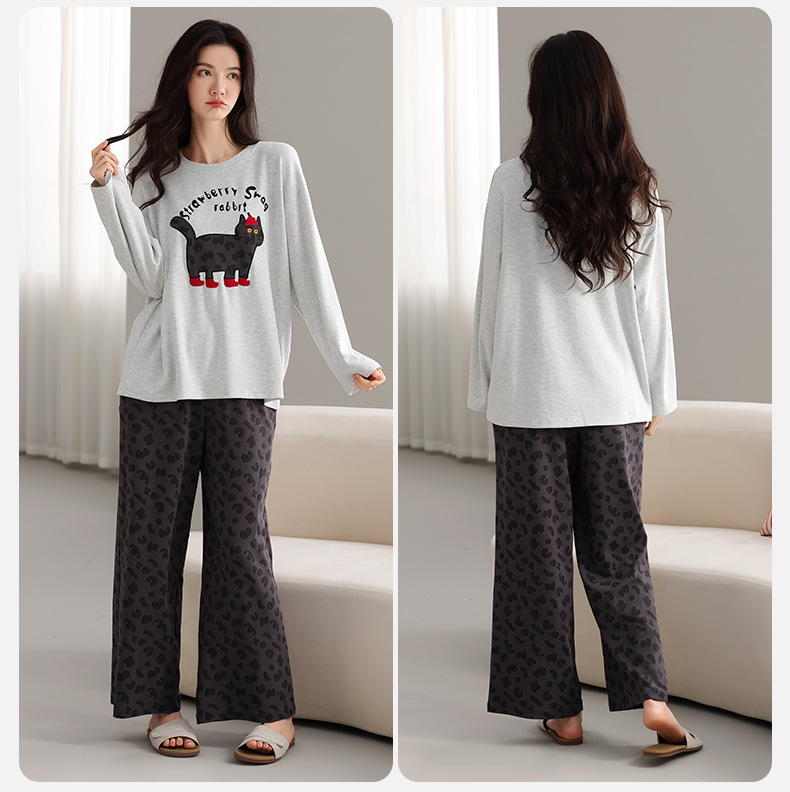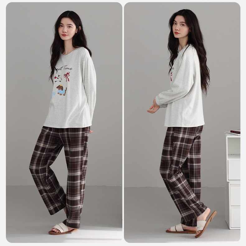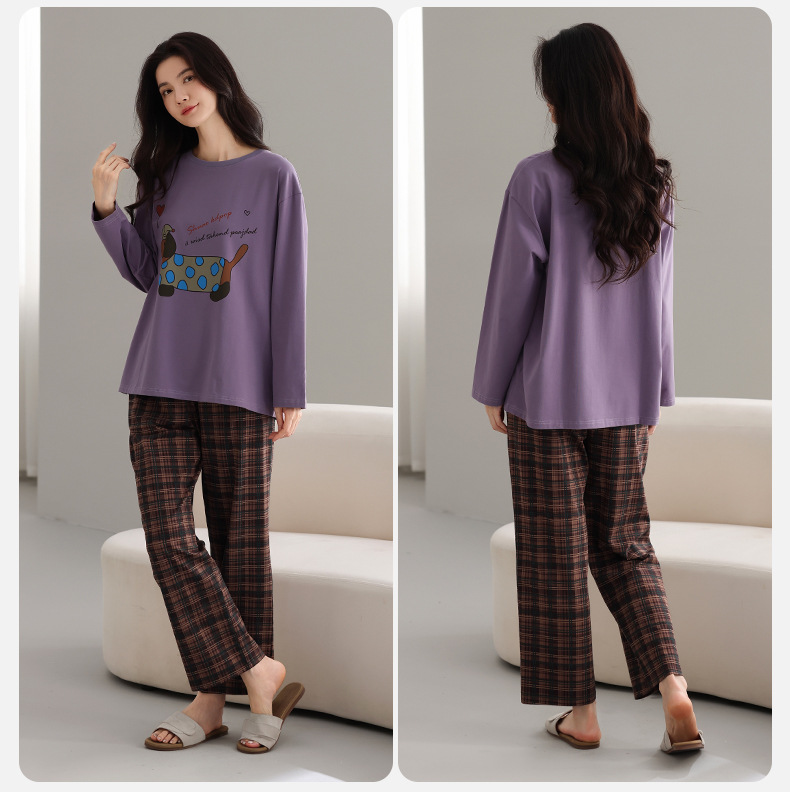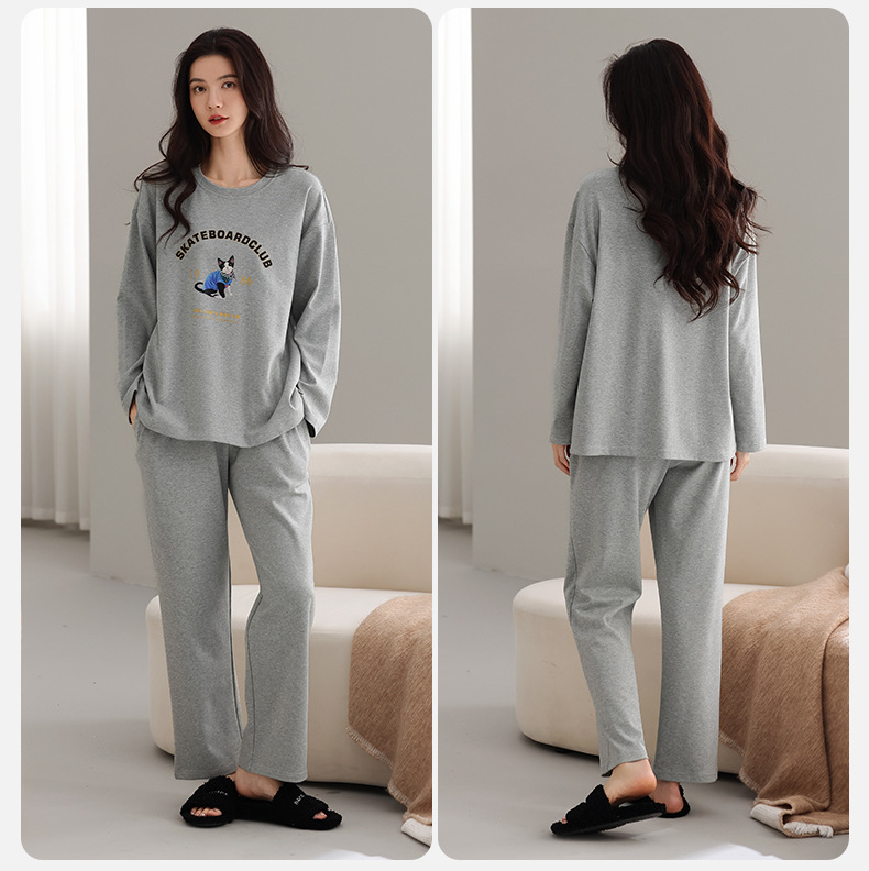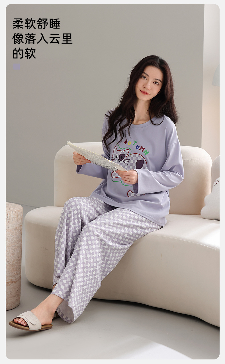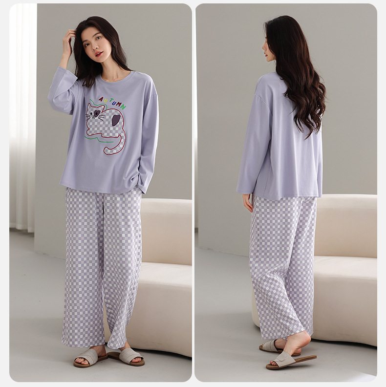 パジャマ女性春秋の純綿長袖女性の秋の純綿の大きいサイズの秋冬の薄いタイプのカジュアルな家庭服のスーツ