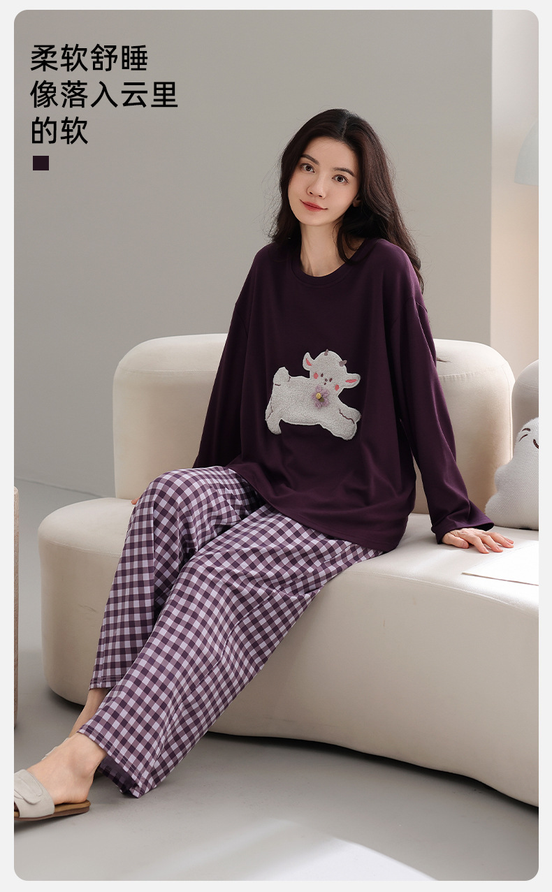带胸垫睡衣女春秋季莫代尔长袖2025新款休闲假两件套头家居服套装