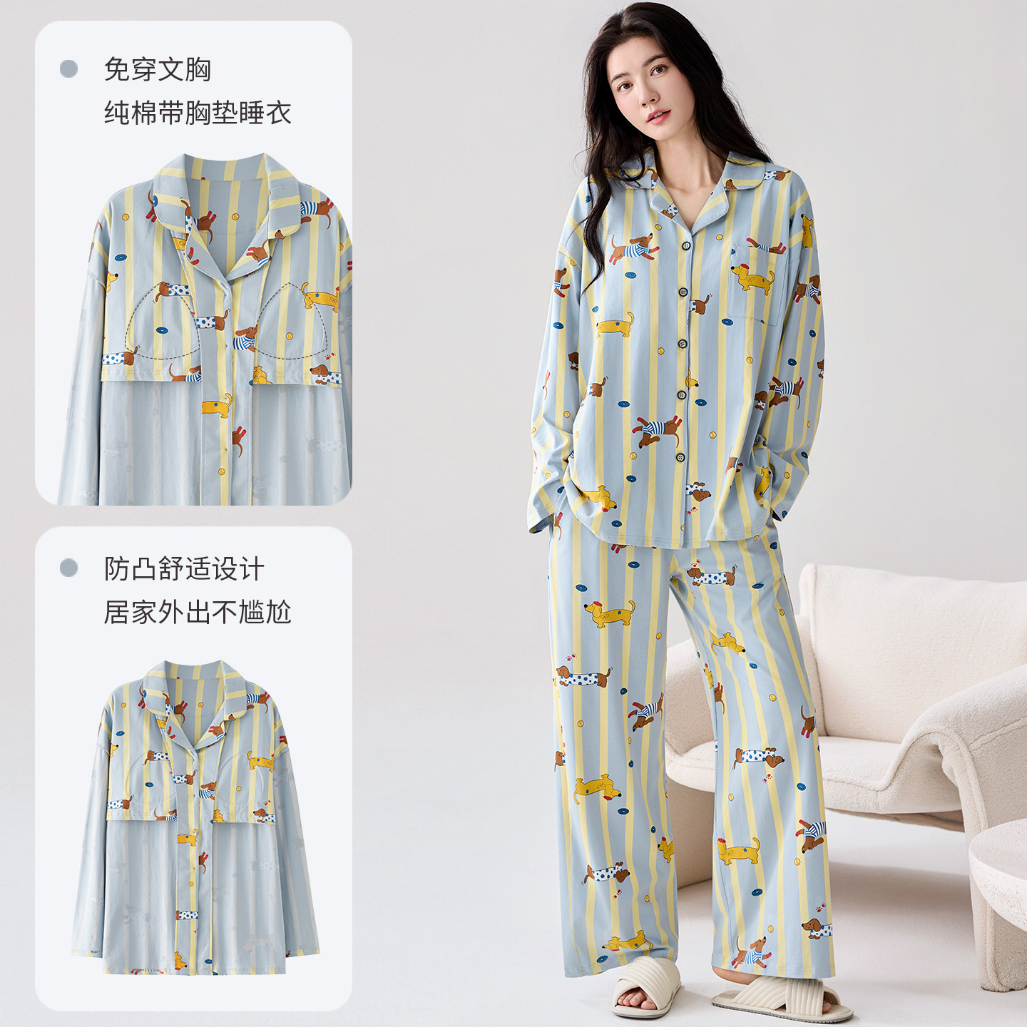 带胸垫睡衣女春秋款秋季2025新款纯棉长袖卡通可爱全棉家居服套装