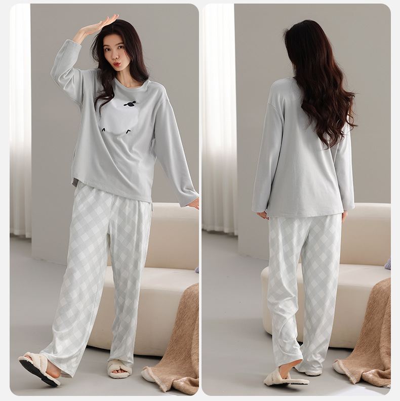 パジャマの女性は冬に三層のベルベットを厚くして綿のセットを織ります。