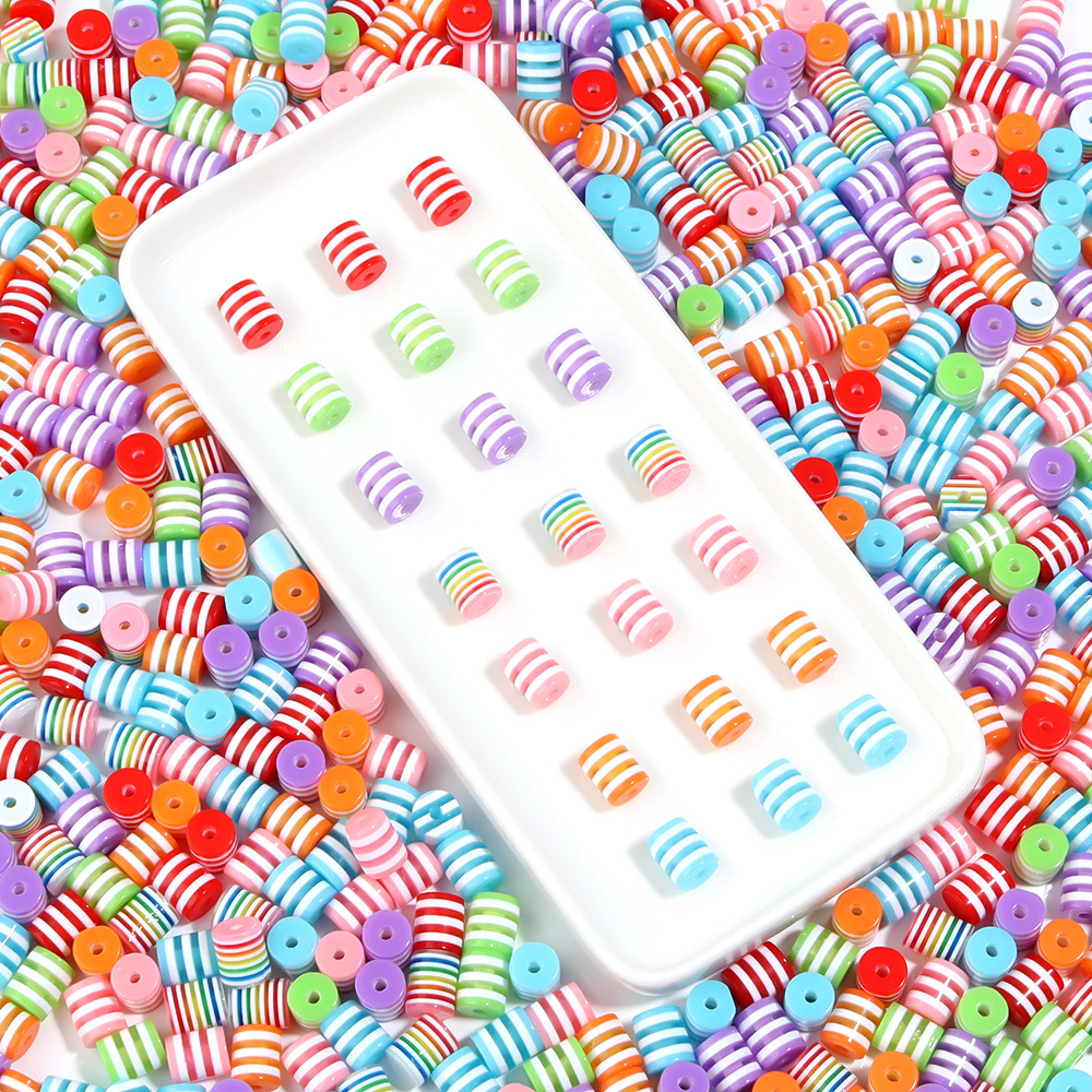 100个/バッグ树脂バレルビーズカラーストライプストレート穴ビーズブレスレットネックレス子供diyビーズ