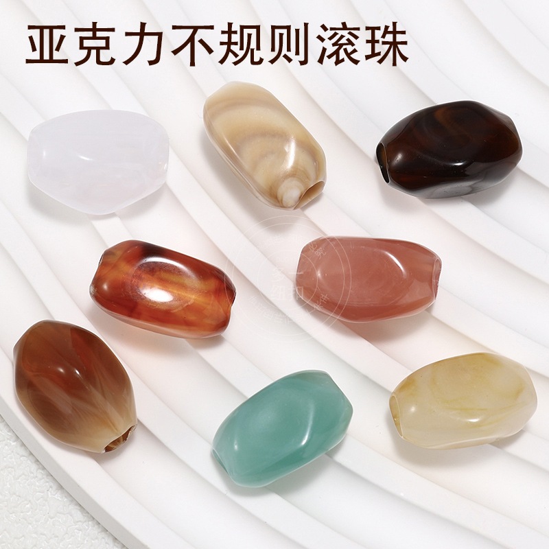 仿玉石玛瑙花纹异形大孔珠diy渐变亚克力珠子泳衣服饰扣子配件