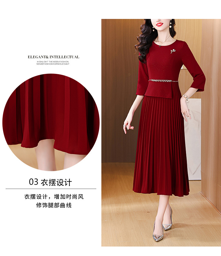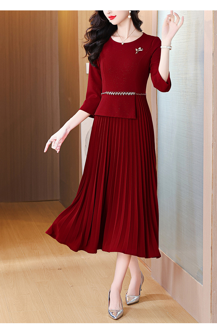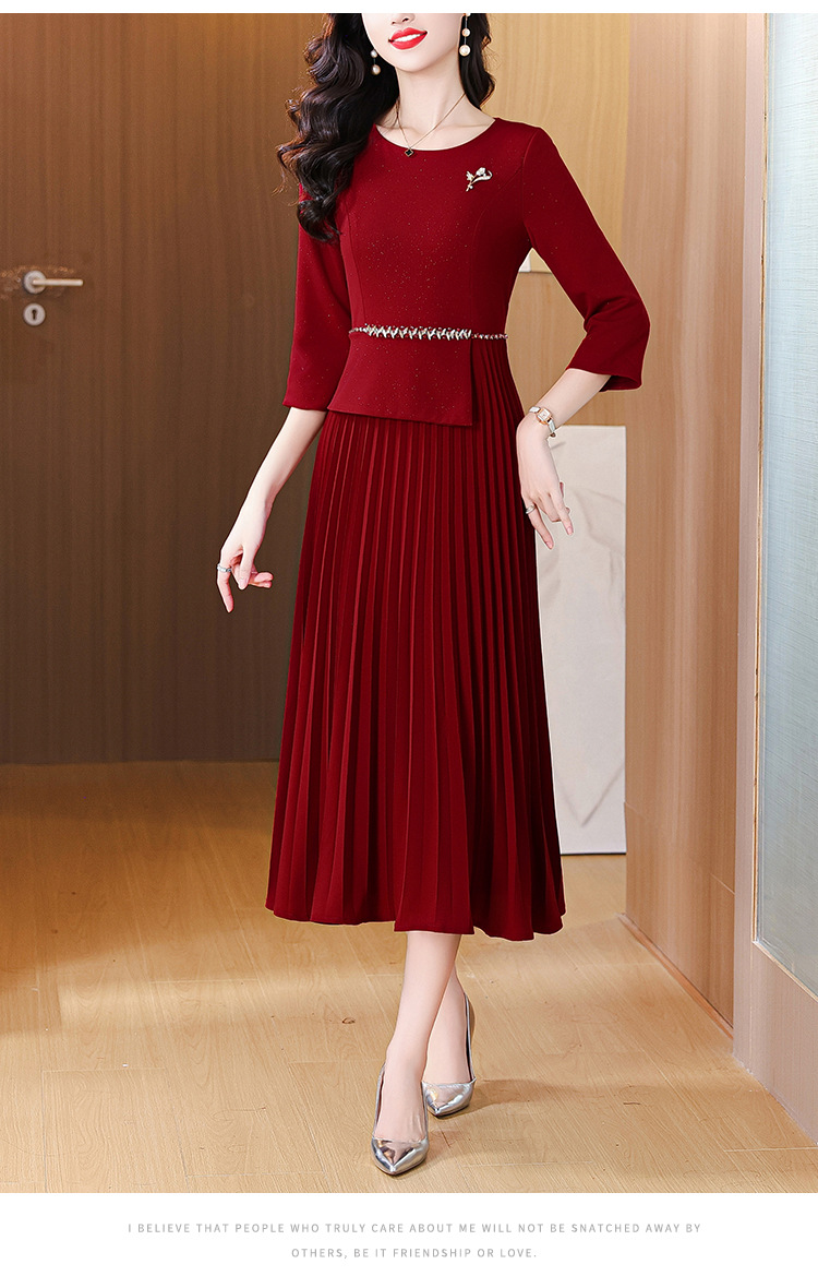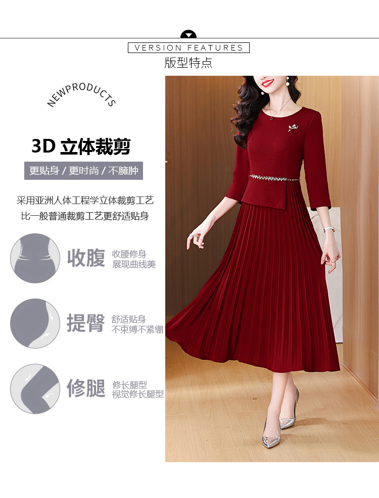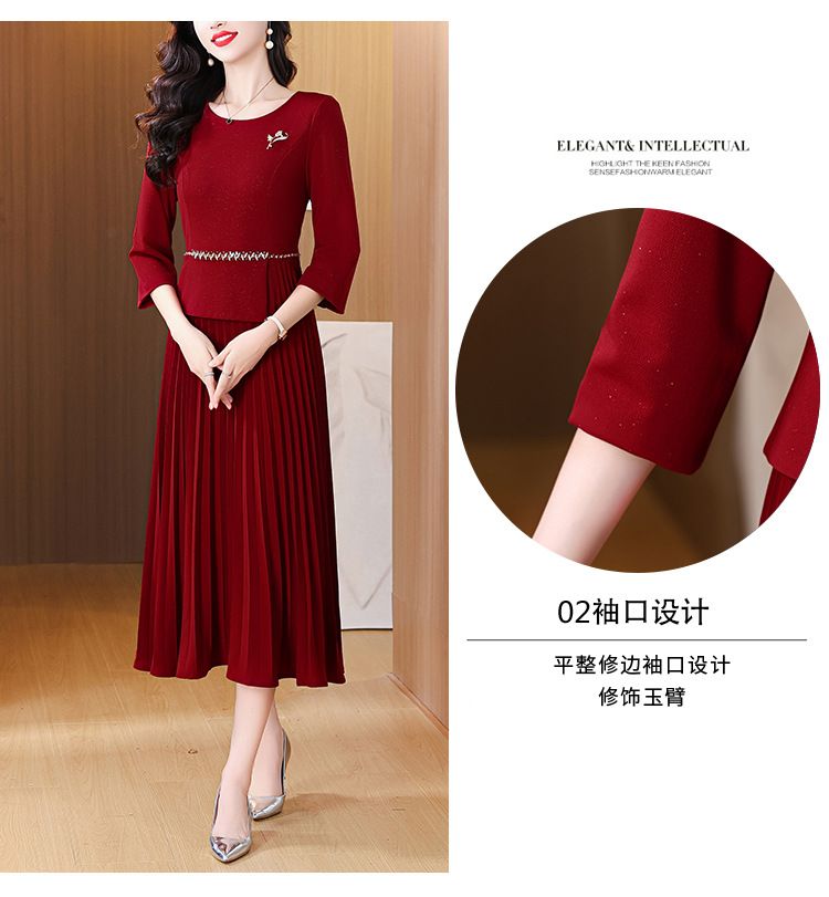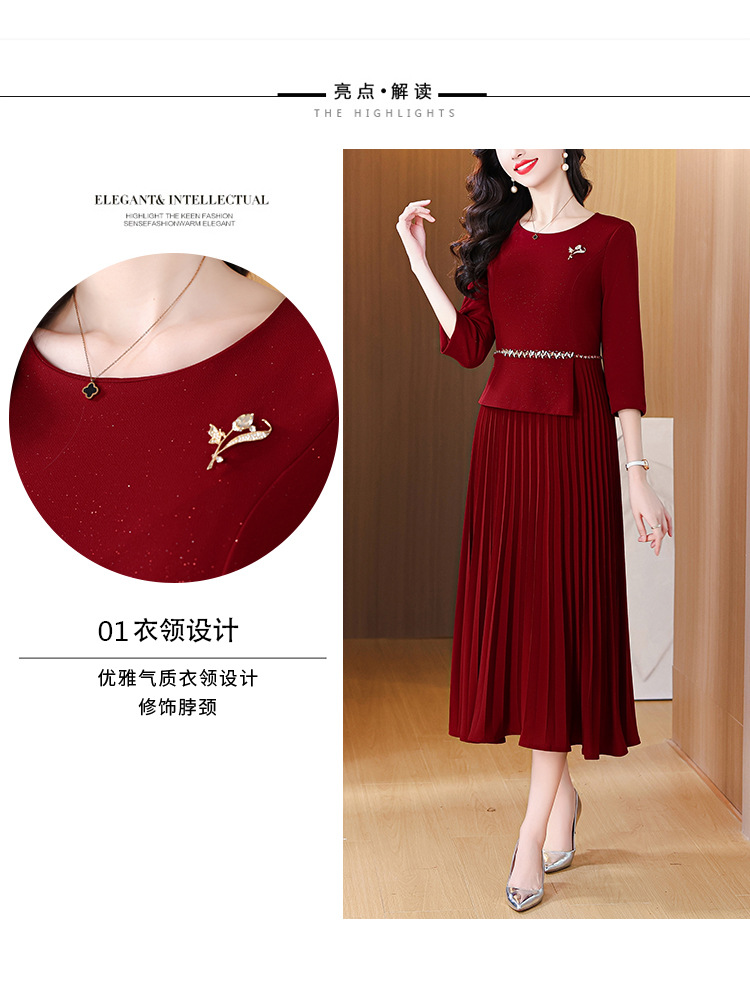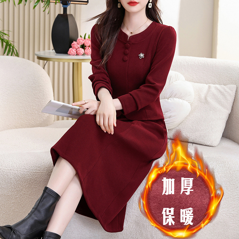 zmdm9853加厚保暖红色连衣裙女2025秋冬新款妈妈装气质优雅敬酒服