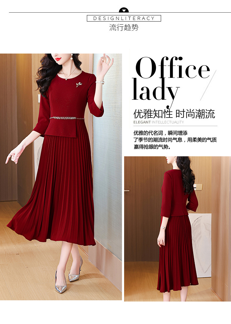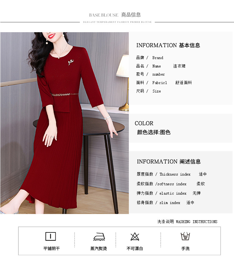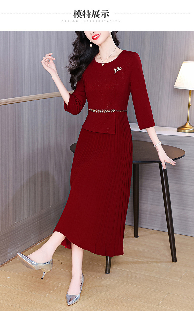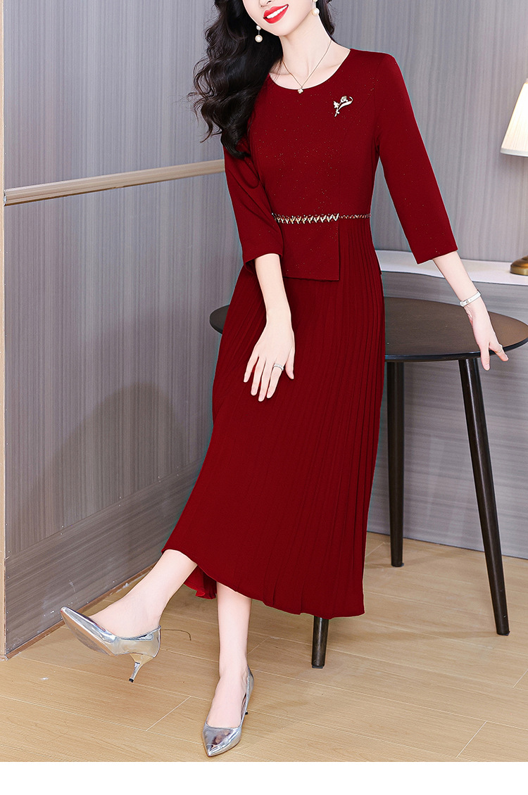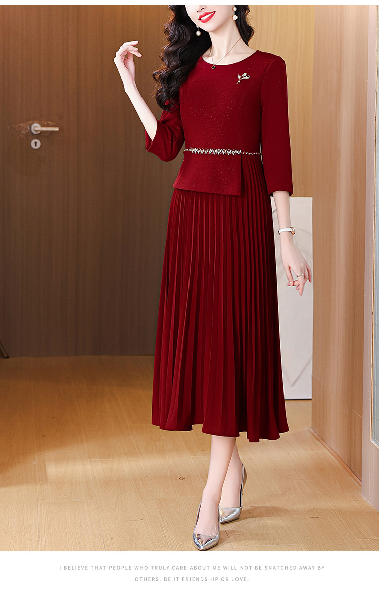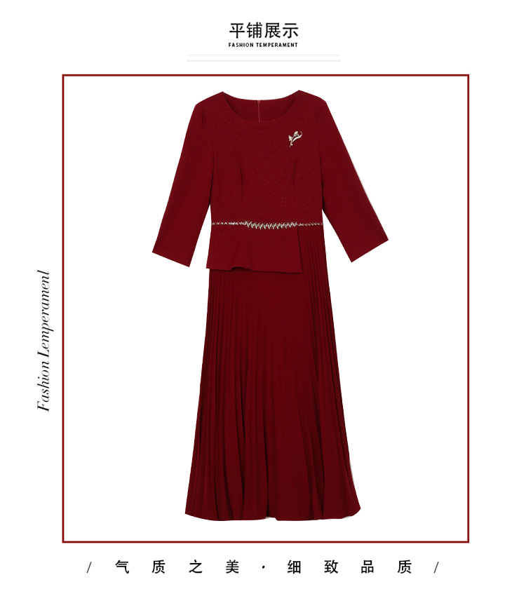 zmdm9853加厚保暖红色连衣裙女2025秋冬新款妈妈装气质优雅敬酒服