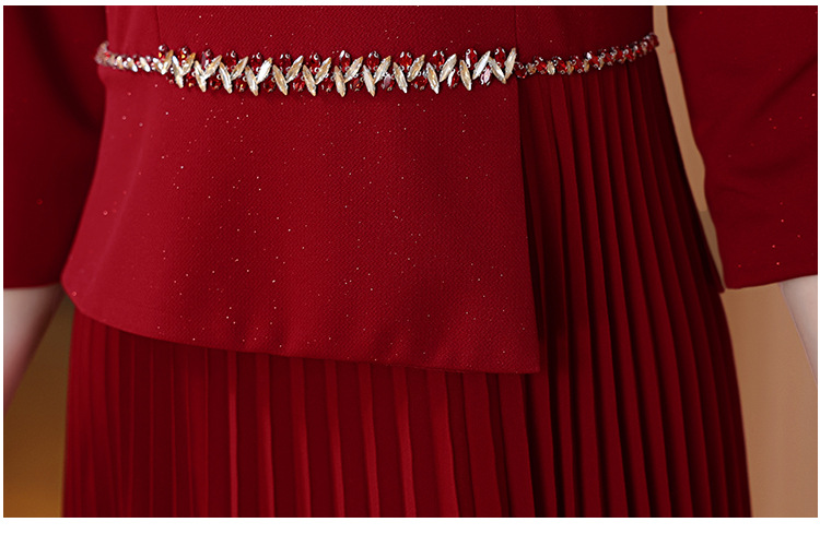 yqwl6896喜婆婆婚宴装礼服裙2025秋季新款酒红色敬酒连衣裙修身款