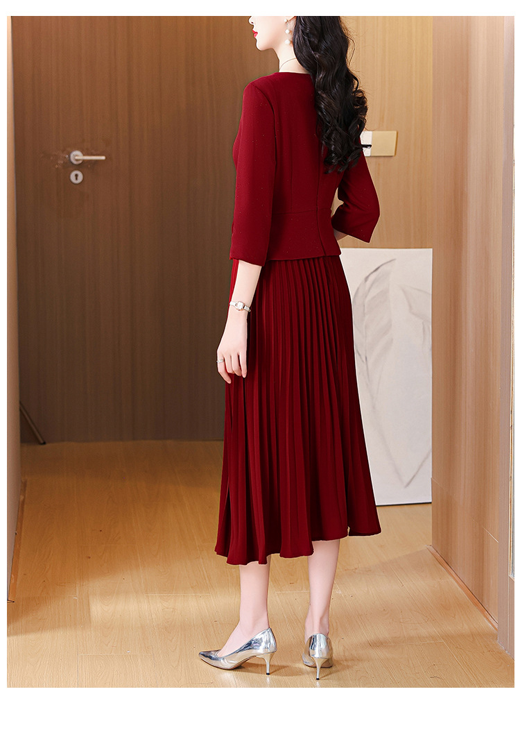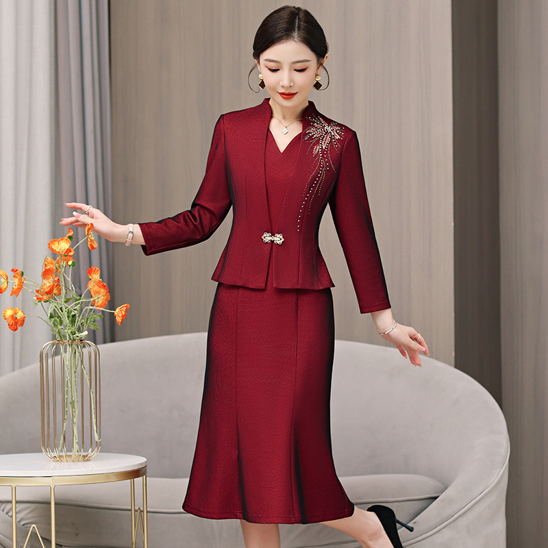 2025春秋新款妈妈婚宴礼服套装裙子轻奢高级感长袖两件套连衣裙女