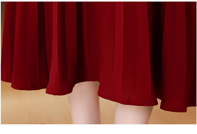 yhfs7928复古优雅婚宴装礼服裙2025新款气质V领钉珠酒红色连衣裙