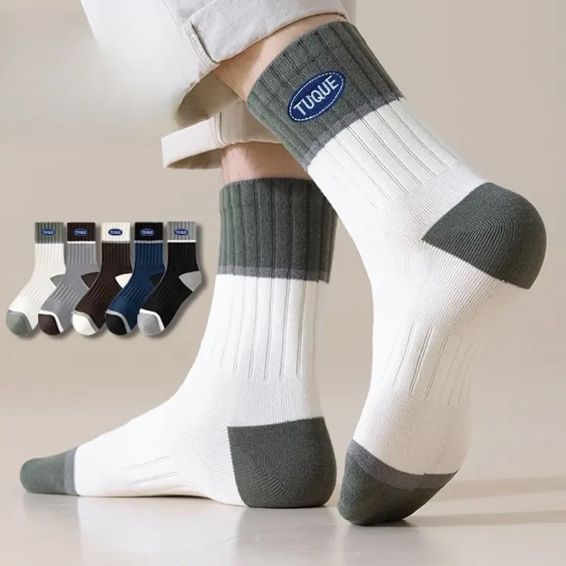 新しい綿の靴下メンズ綿の靴下 1 ペア中型厚みのある秋のメンズ靴下スポーツ消臭吸汗性秋と冬のスタイル
