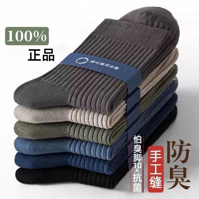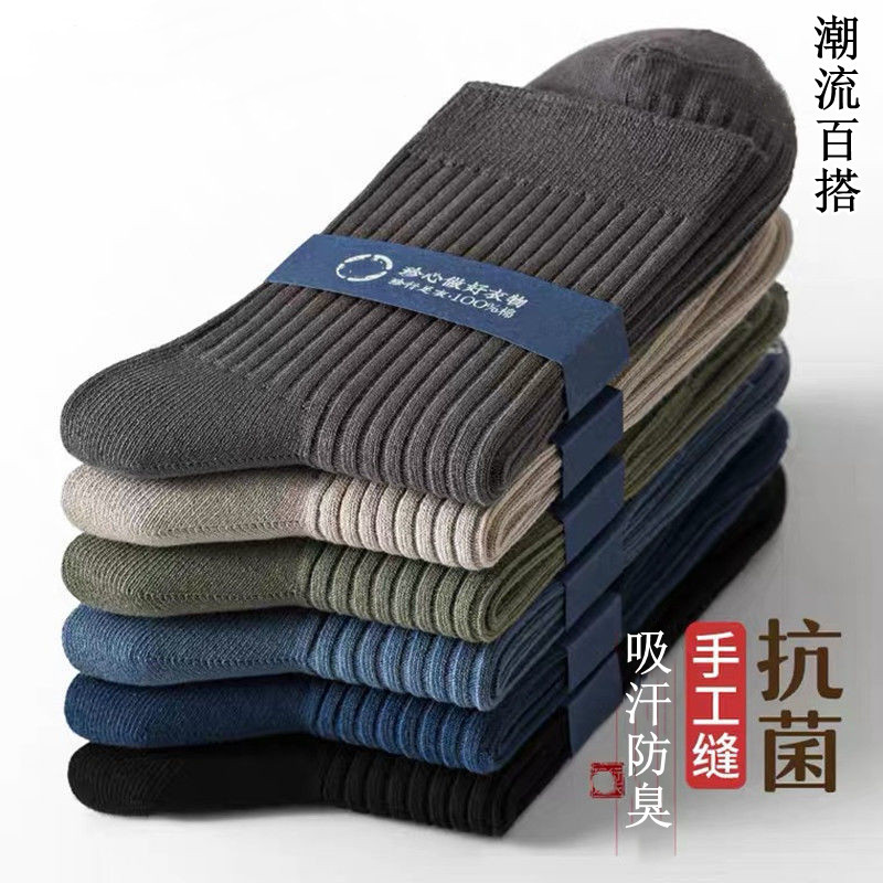 メンズ純色綿秋冬加厚タイプ靴下防臭通気吸汗中筒スポーツ靴下ビジネス四季百合ファッション靴下