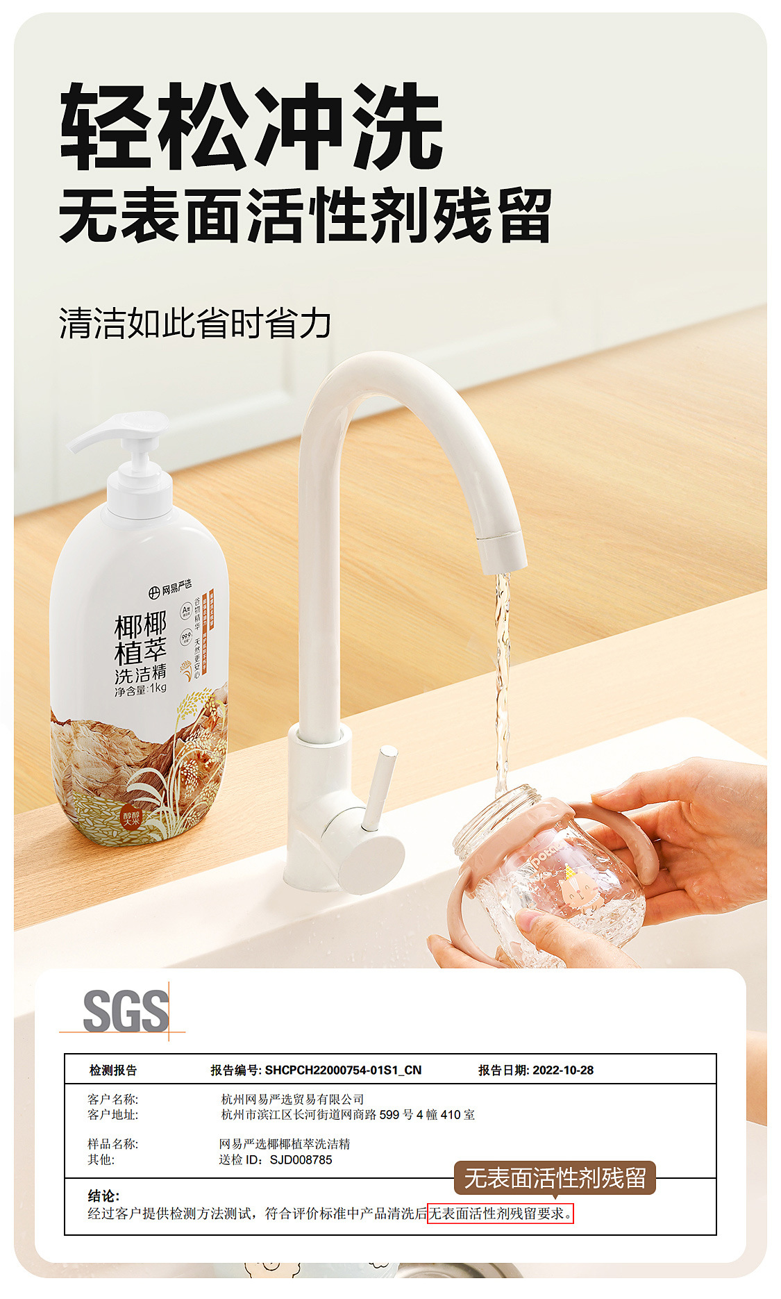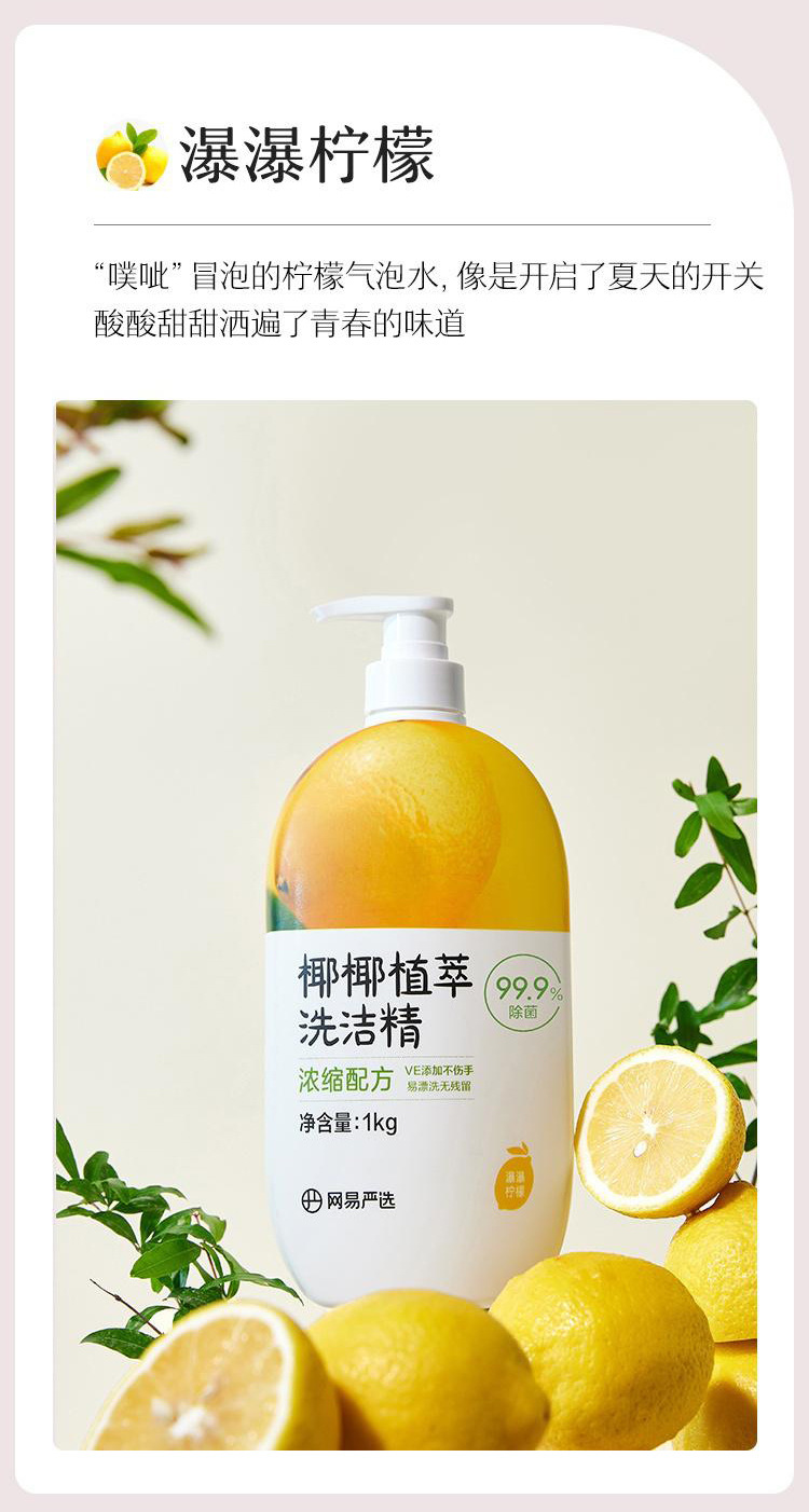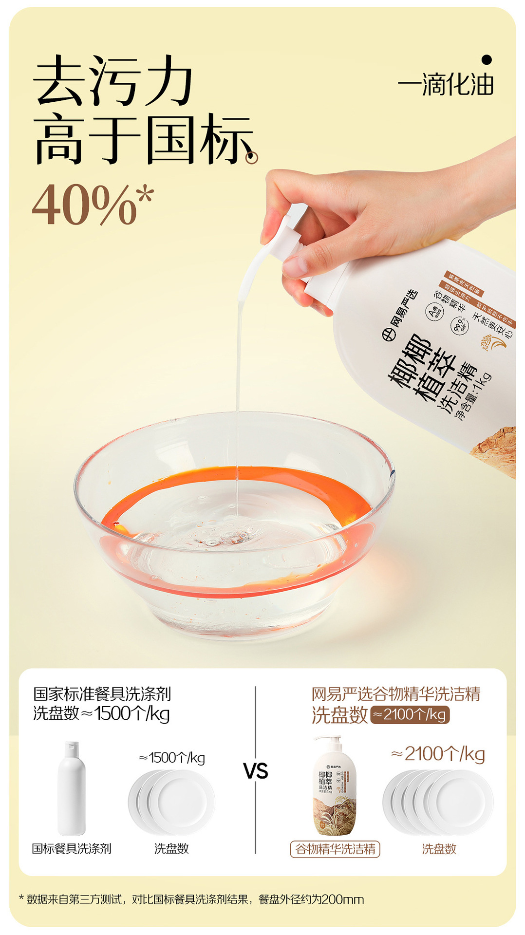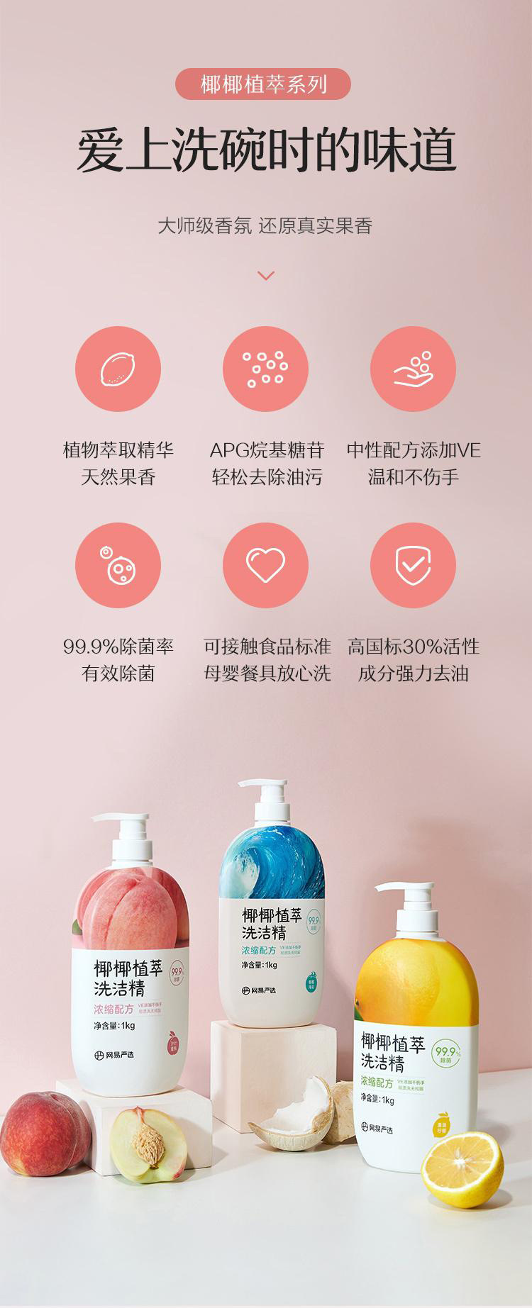 网易严选椰椰植萃洗洁精正品洗涤剂灵洗碗液食品级果蔬清洗剂餐具