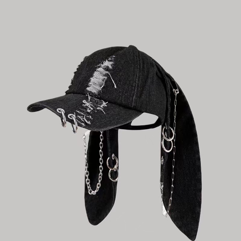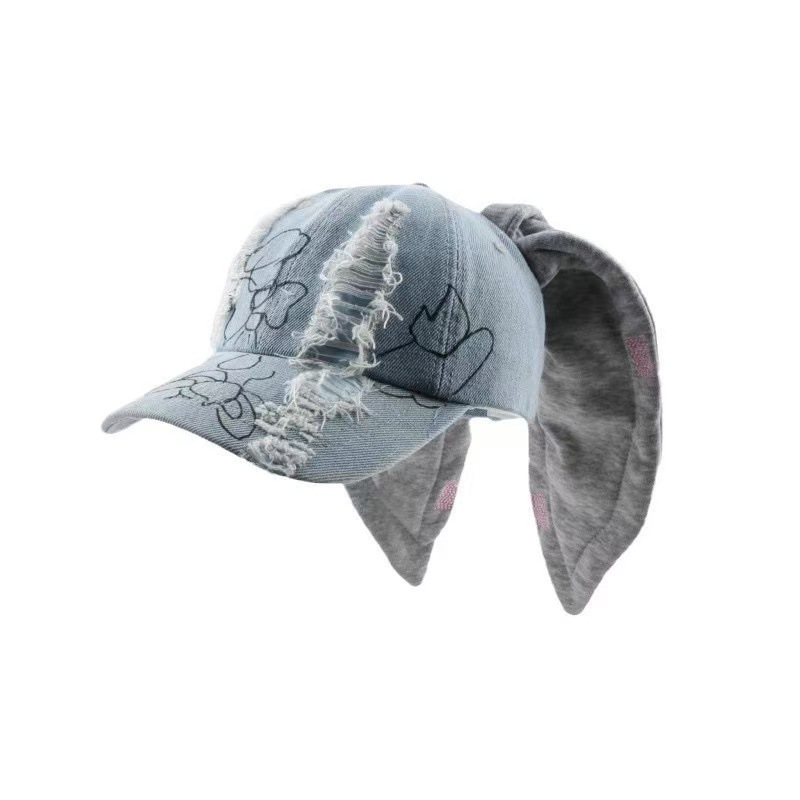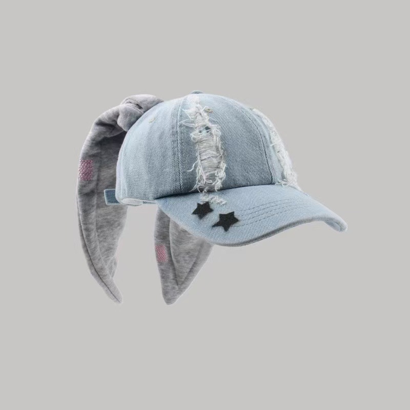 韩国明星同款风兔耳朵水洗破洞牛仔棒球帽女嘻哈辣妹街拍鸭舌帽子