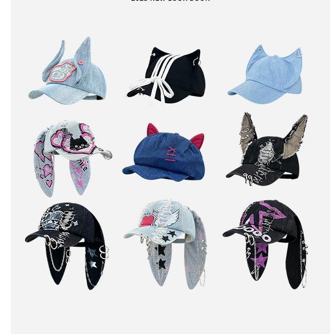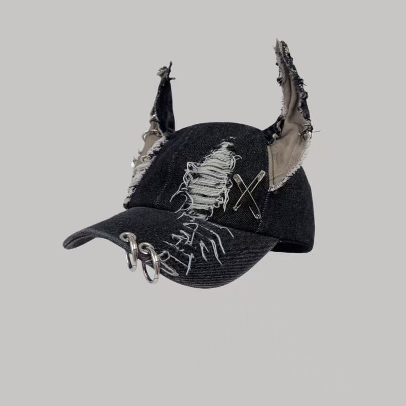 欧美跨境帽子女款嘻哈废土风棒球帽y2k破洞牛仔立耳杜宾狗鸭舌帽