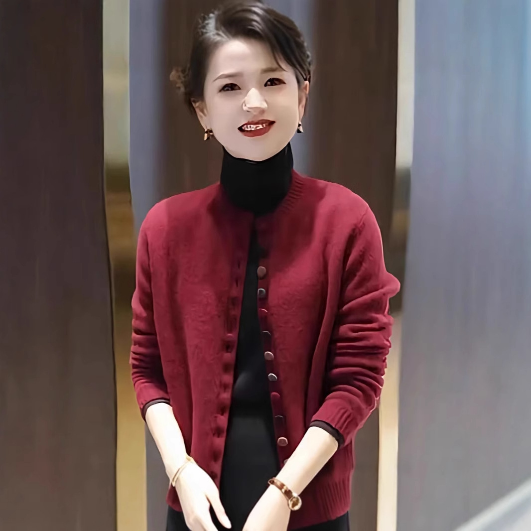 秋冬独特の新中国風安可拉紅修身メリヤス女性セーターのデザイン感立襟盤ボタン上着