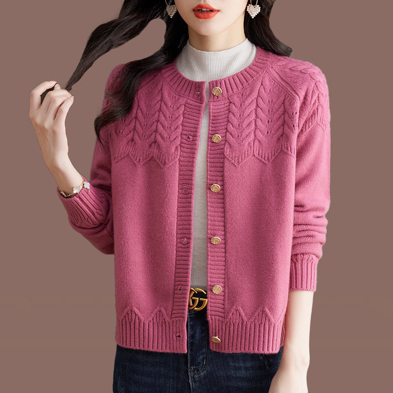 春秋タイプの高級感洋風独特のユニークな上着の年齢を減らすフランスのアンコラの赤いセーターのニットカーディガンの女性