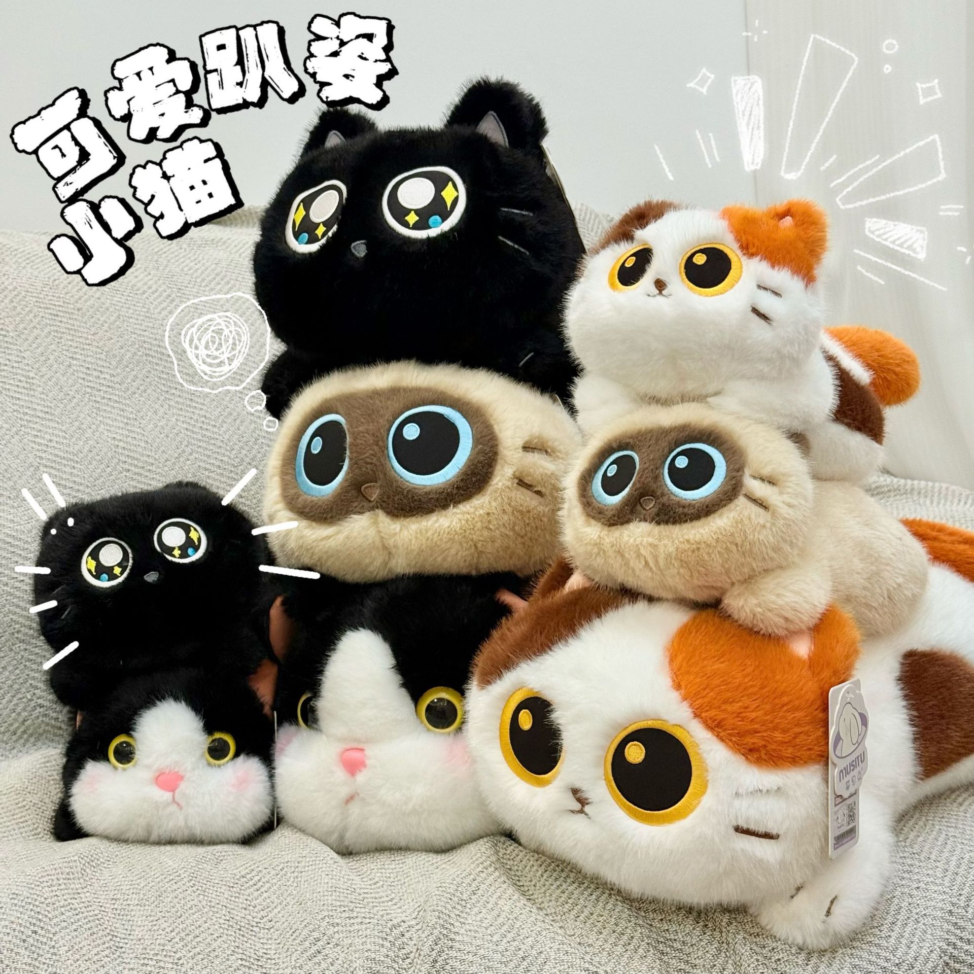 软体三花暹罗奶牛黑猫趴款颗粒小猫玩偶抱枕女生日礼物公仔批发