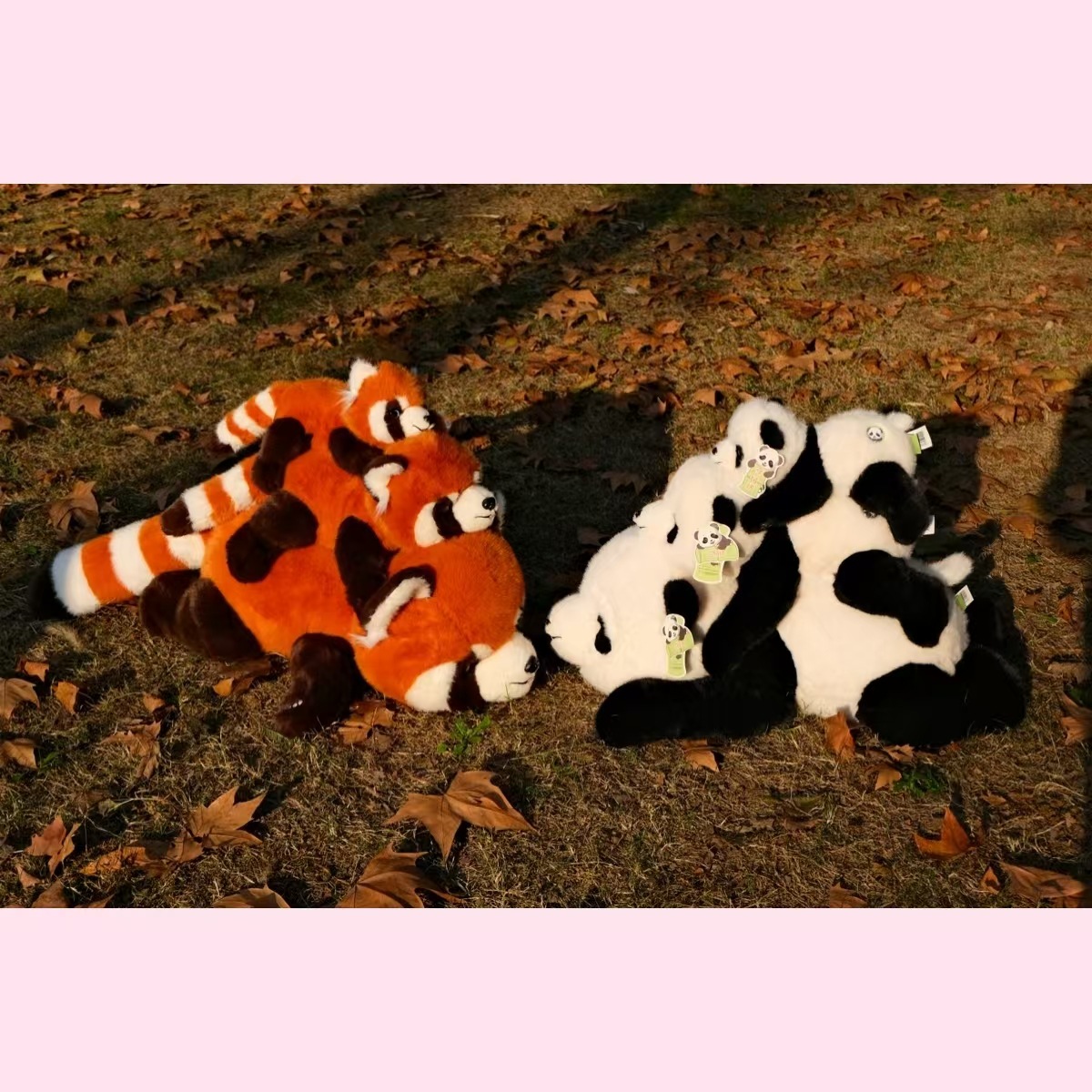 本物の芸絹坊香敦敦テーブルコンパニオン動物型おもちゃ、座り姿勢の人形、学習のお供、レッサーパンダ、ペンギン