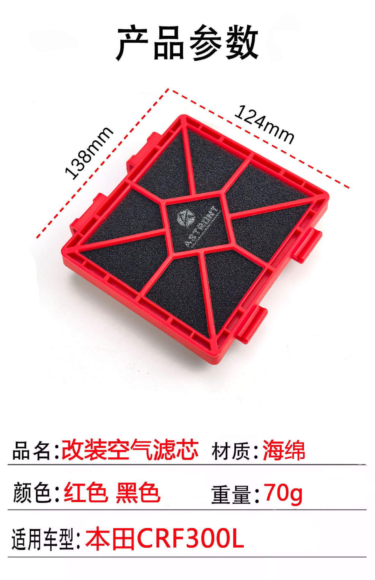 越野摩托车改装空气滤芯配件适用于本田CRF300L空气过滤棉