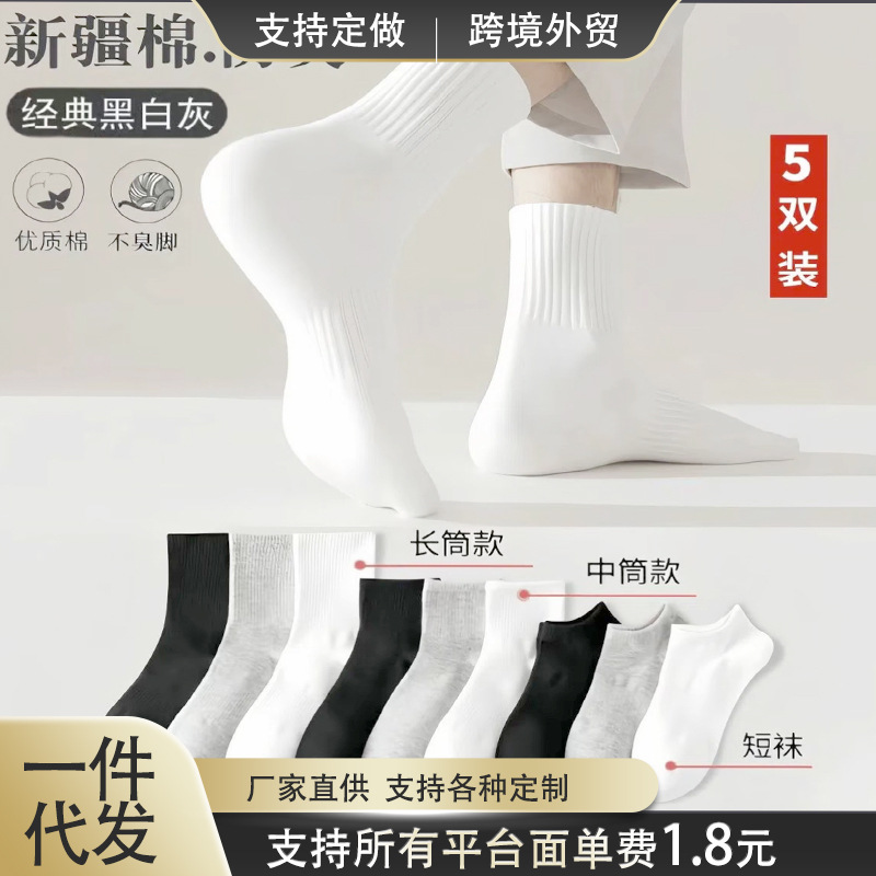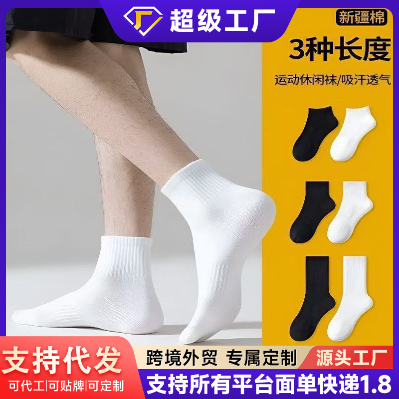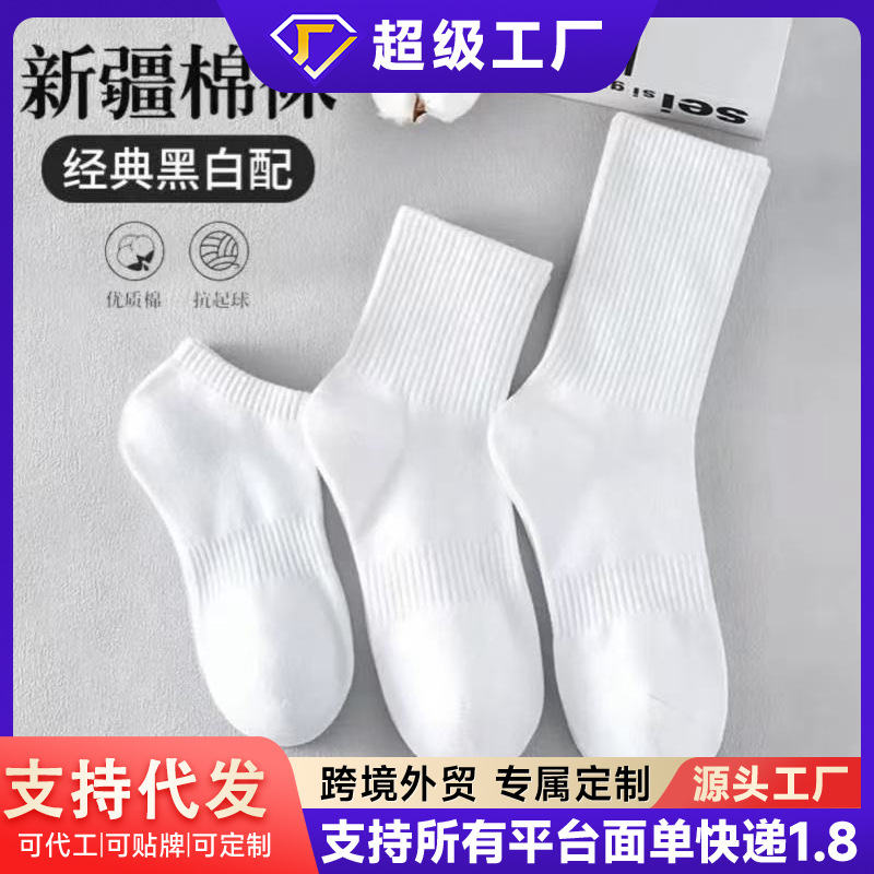 【新疆棉】四季袜男女款短中长筒纯色棉袜吸汗透气防臭白色棉袜子