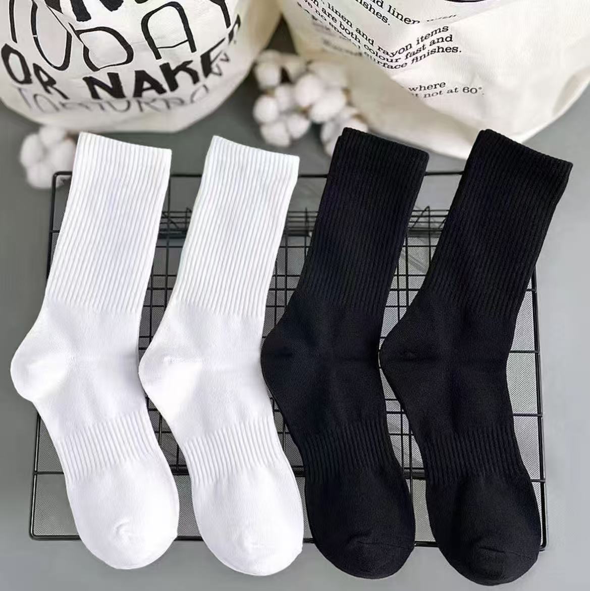 白ソックスレディース秋冬ソックススポーツブラック純綿ins潮レディースソックス純色春秋ミドルソックス