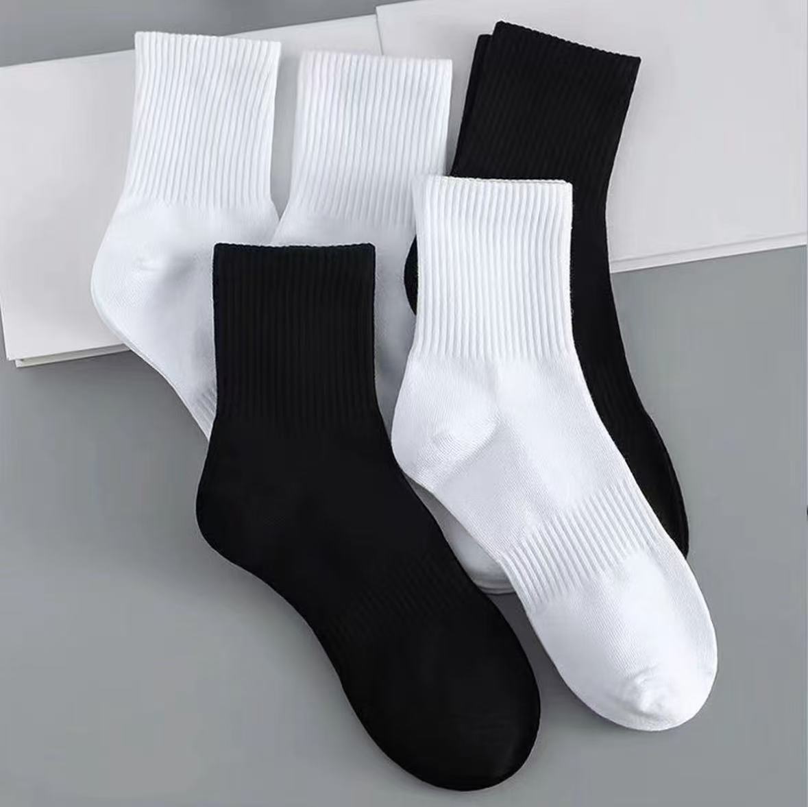 棉袜新疆棉袜子男女运动袜黑白纯色秋冬四季学生情侣防臭长中短袜