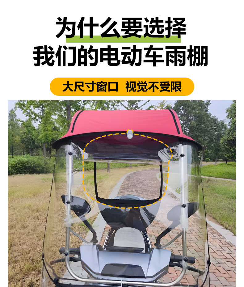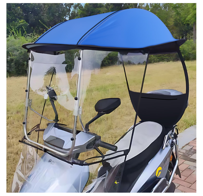 電動車用大型窓付き雨よけ、厚手の黒色接着剤で日よけ、バイク用雨よけ、電動車用日よけ傘