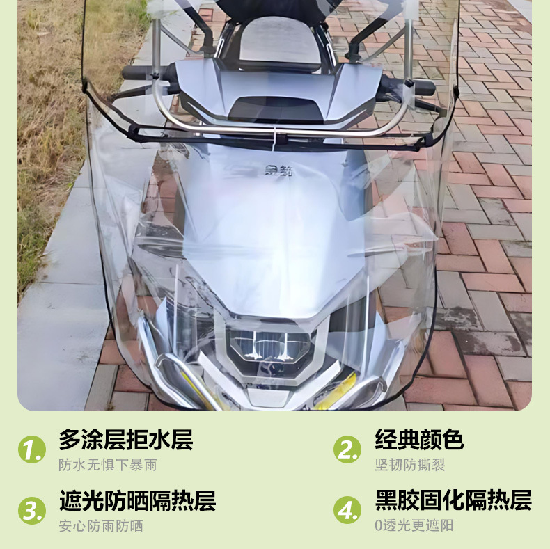 電動自転車用雨よけ、大型窓付き電動自転車用雨よけ、電動スクーター用雨よけ、防水黒色接着剤日よけ