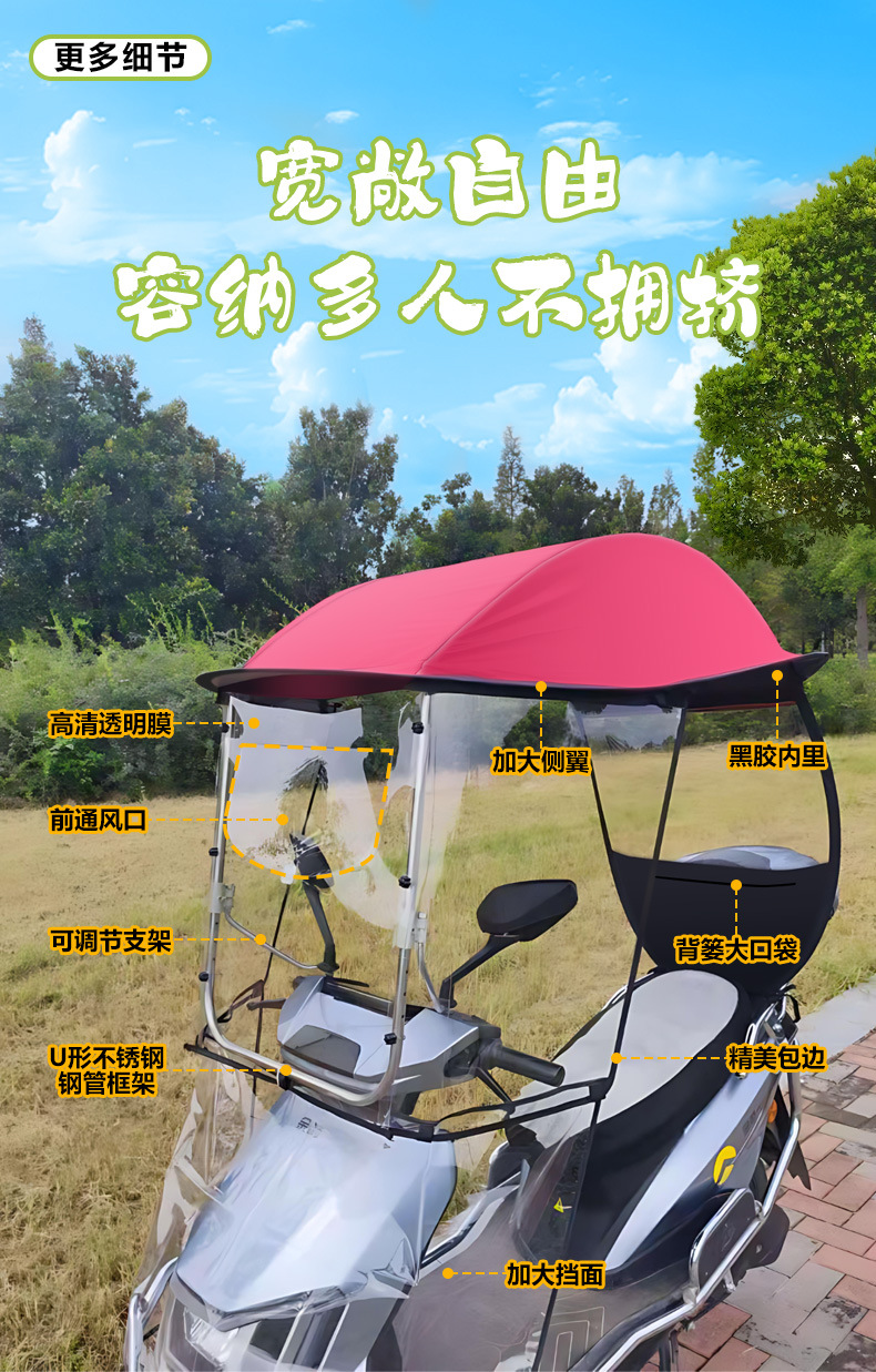 外贸款电动车雨棚蓬电瓶车遮阳伞摩托车防晒防雨挡风电车挡雨车棚
