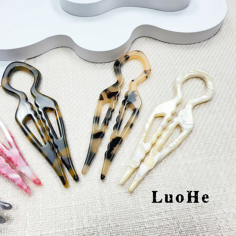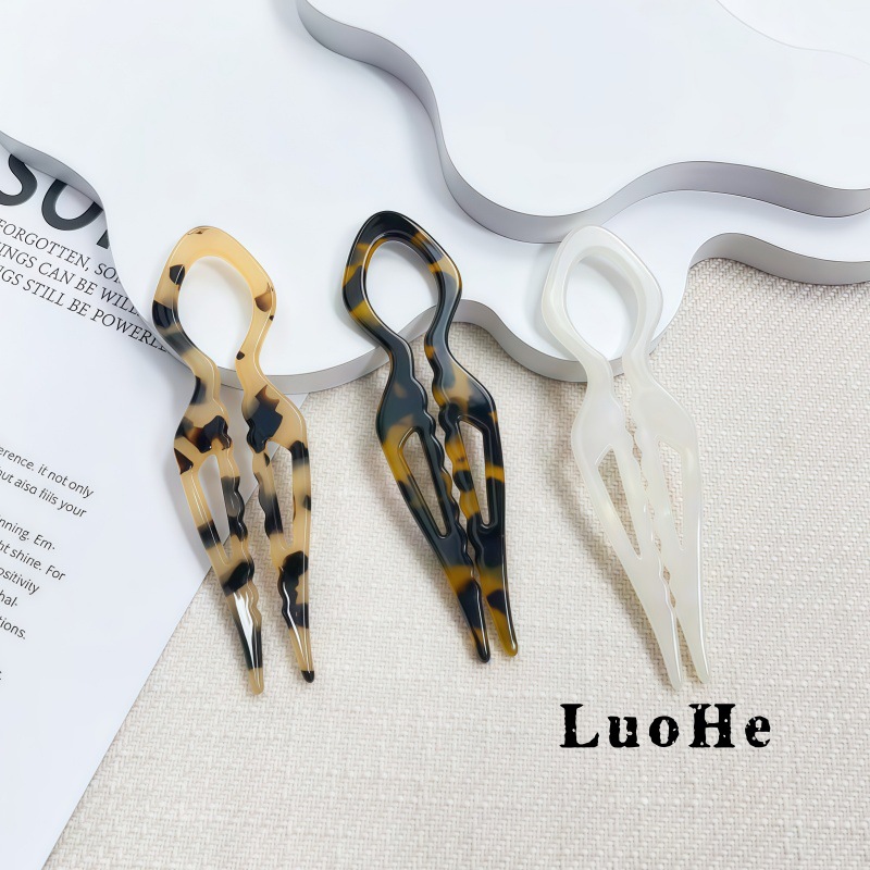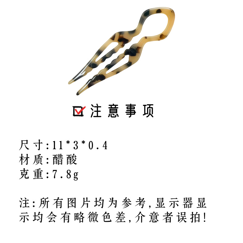 络禾饰品法式复古经典醋酸u型发夹高级感简约发簪高级感丸子头发