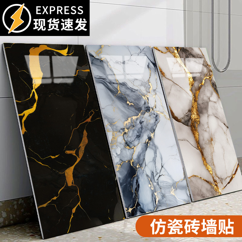 仿瓷砖墙贴厨房防污防油仿大理石自粘墙纸卫生间防水翻新遮丑贴纸