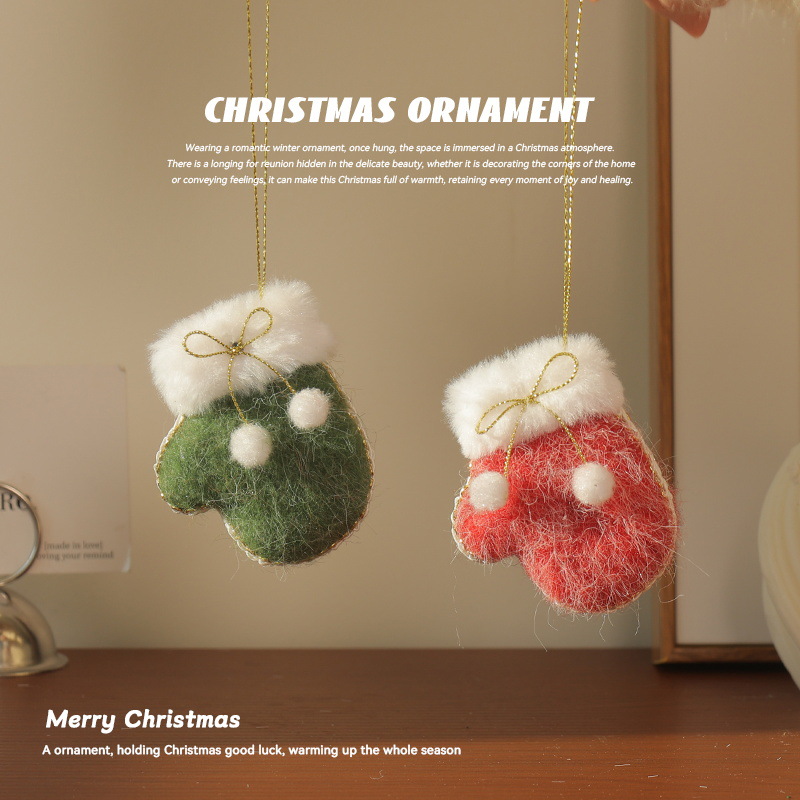 跨境新款圣诞节装饰品圣诞树挂件挂饰圣诞毛毡靴子手套异型小挂件