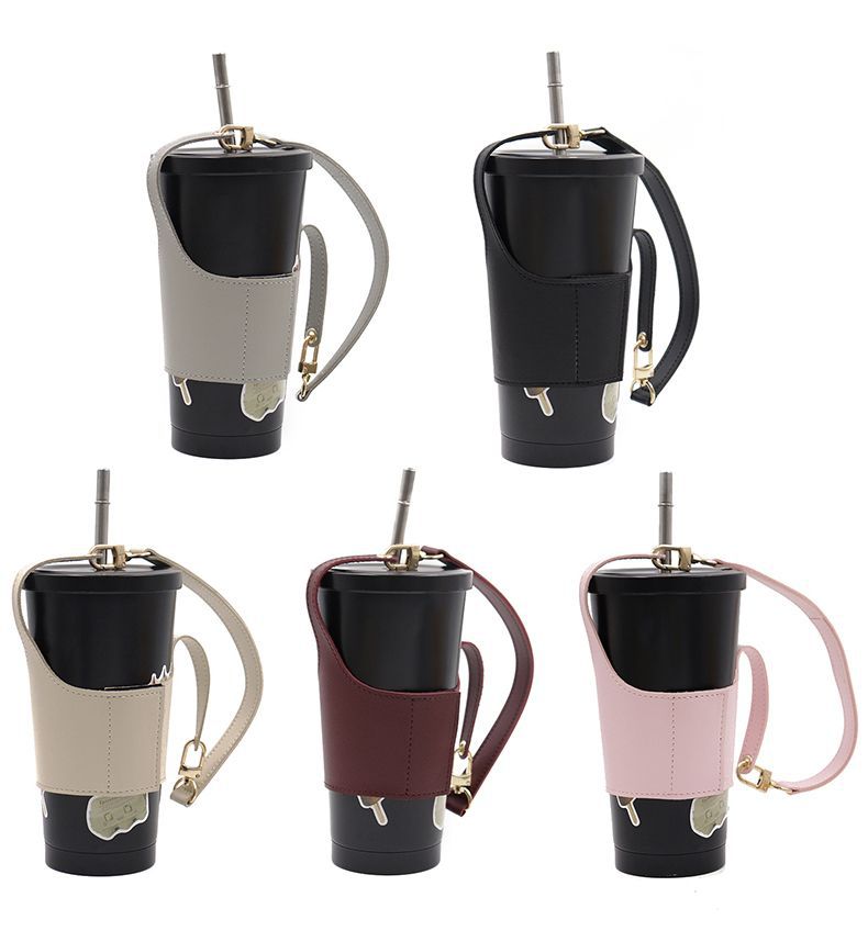 高颜值新款手提杯套奶茶咖啡杯隔热防烫魔术贴手PU便携杯子可定制