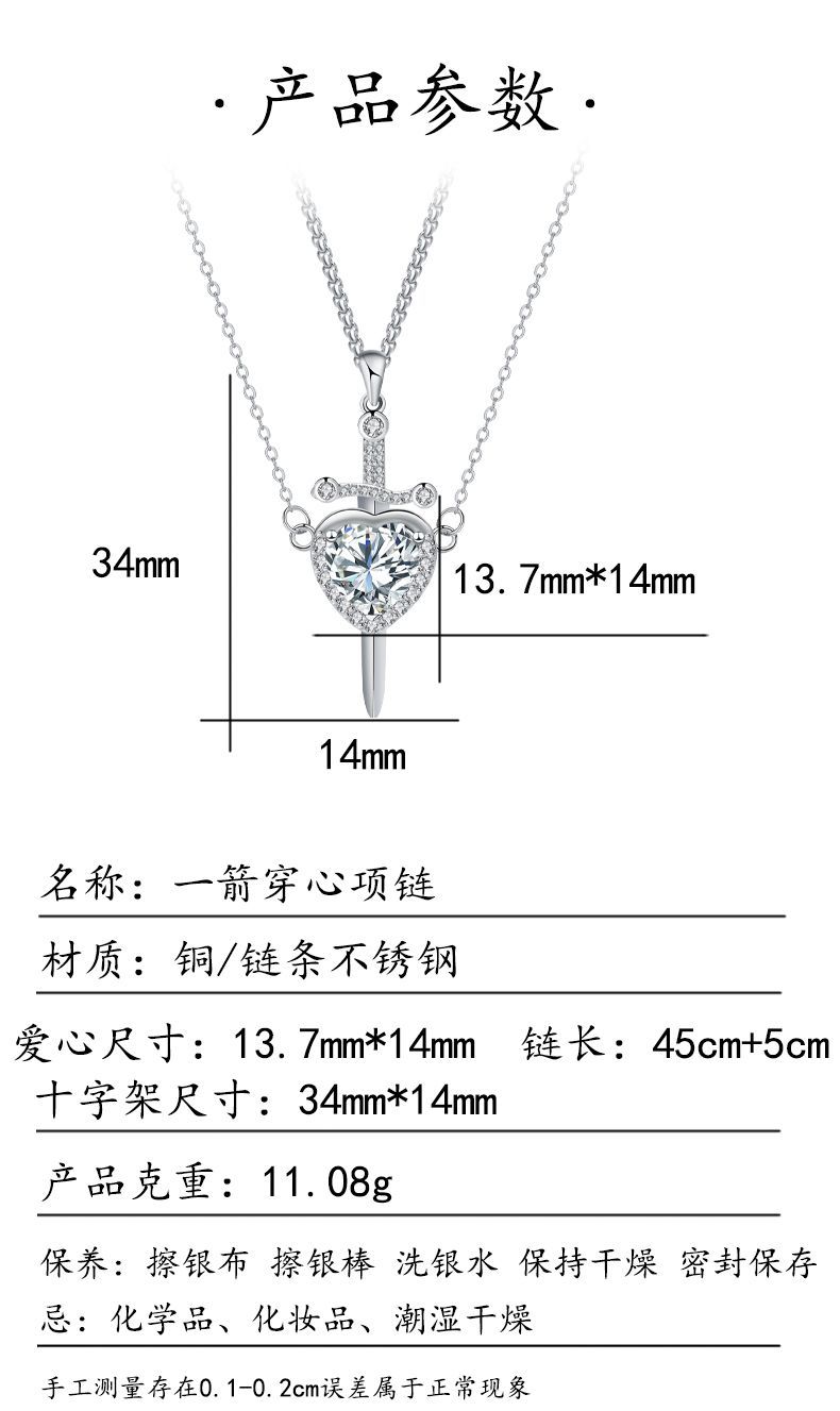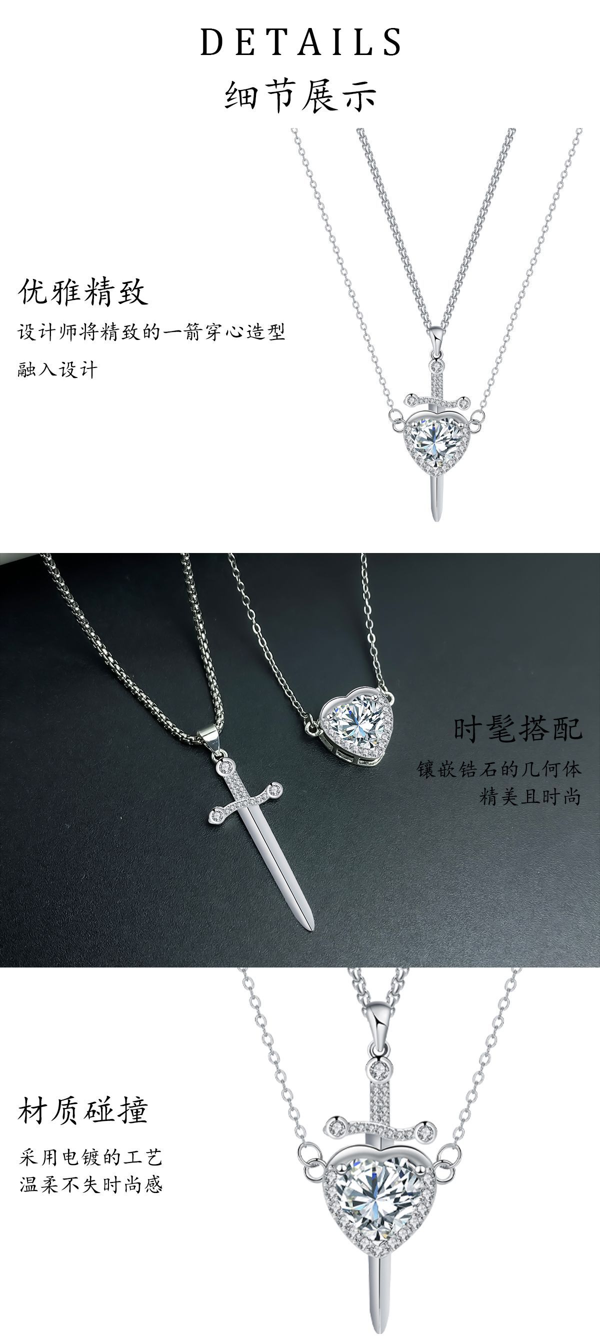 欧美创意一箭穿心套装项链 精美气质情侣爱心锆石宝剑吊坠锁骨链