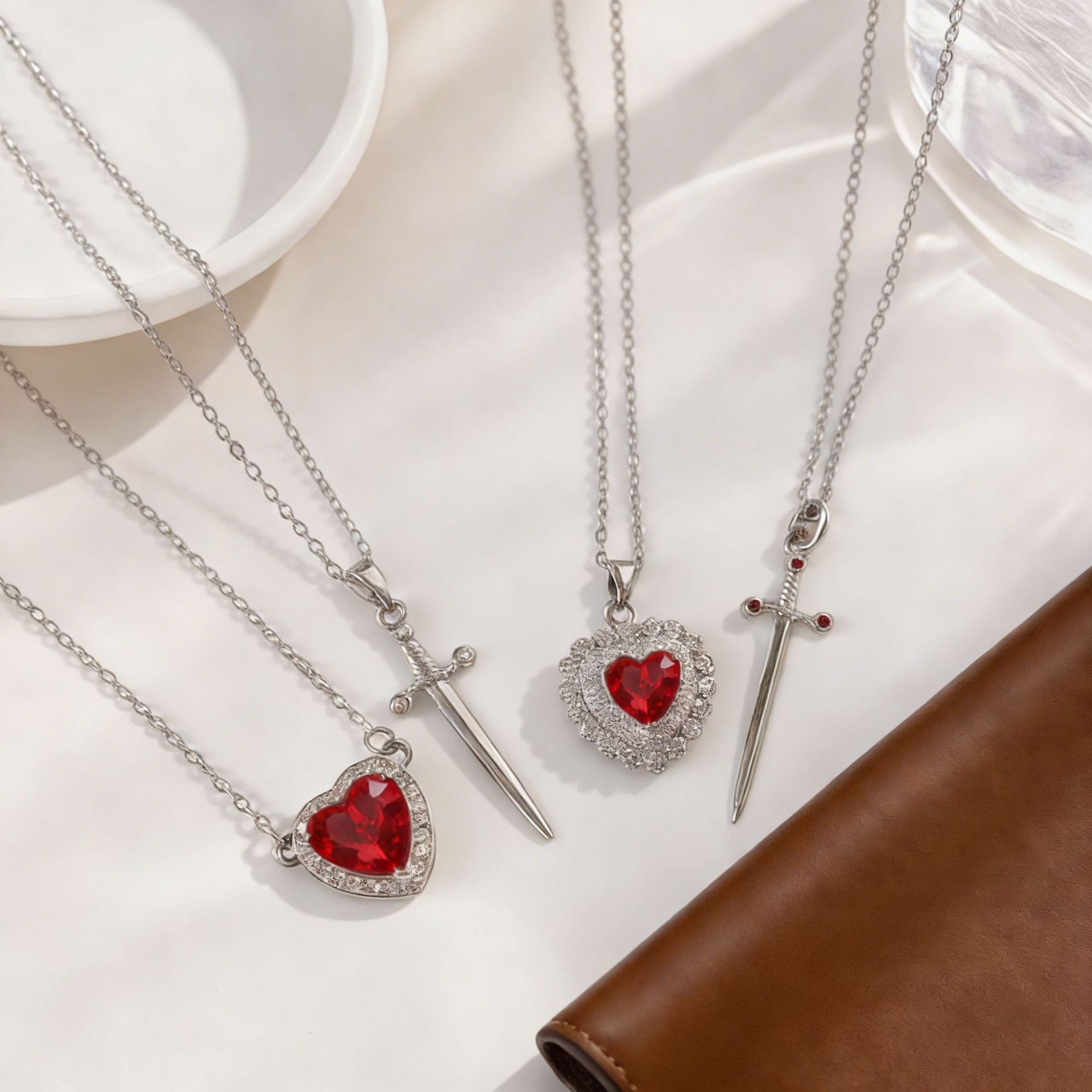 ヨーロッパとアメリカの国境を越えた新しい売れ筋製品レッドクリスタルラブダガーファッションペンダント層状フレンチレトロレディースネックレス
