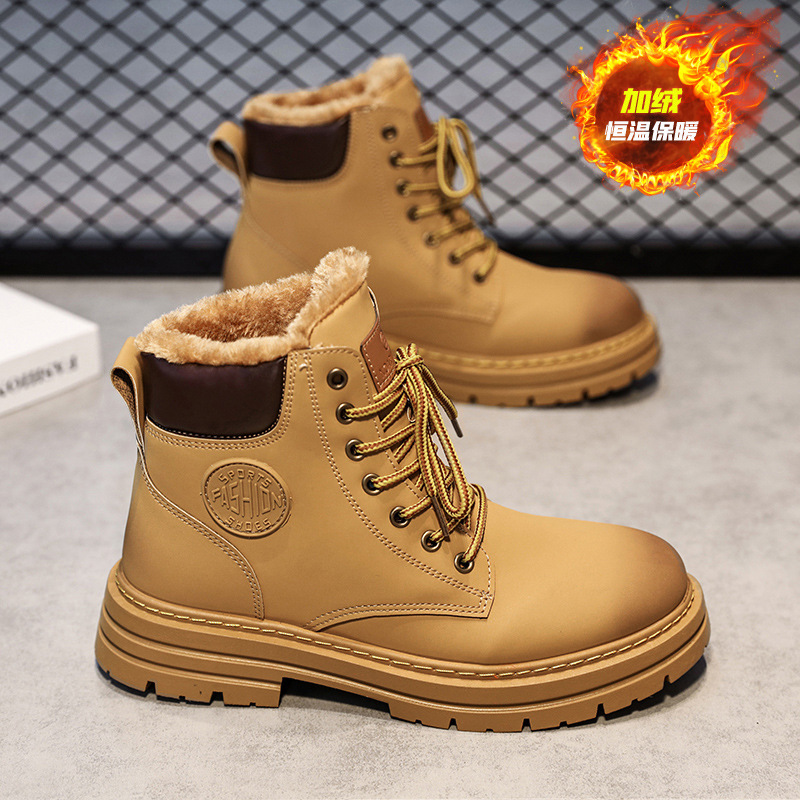 マーティンブーツ男性モデル2024冬の新型防寒ベルベット保温綿靴底英倫男性工装靴
