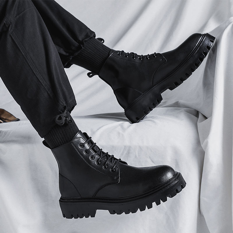 マーティンブーツ男英倫風高組ブーツ秋男靴新型中組高背革靴黒チェルシーショートブーツ