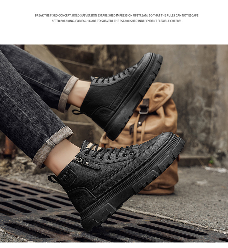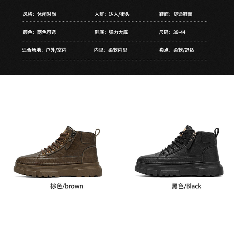 男鞋2025秋冬季新款高帮复古工装鞋男户外厚底休闲马丁靴潮流百搭