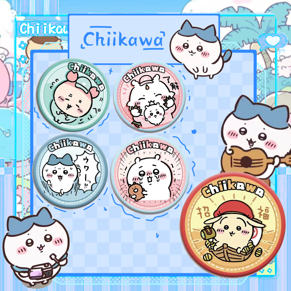 Chiiawa吉伊卡わぁバッジはアニメのかわいい表情でブリキのバッジのかばんを包んでブローチを飾ります。
