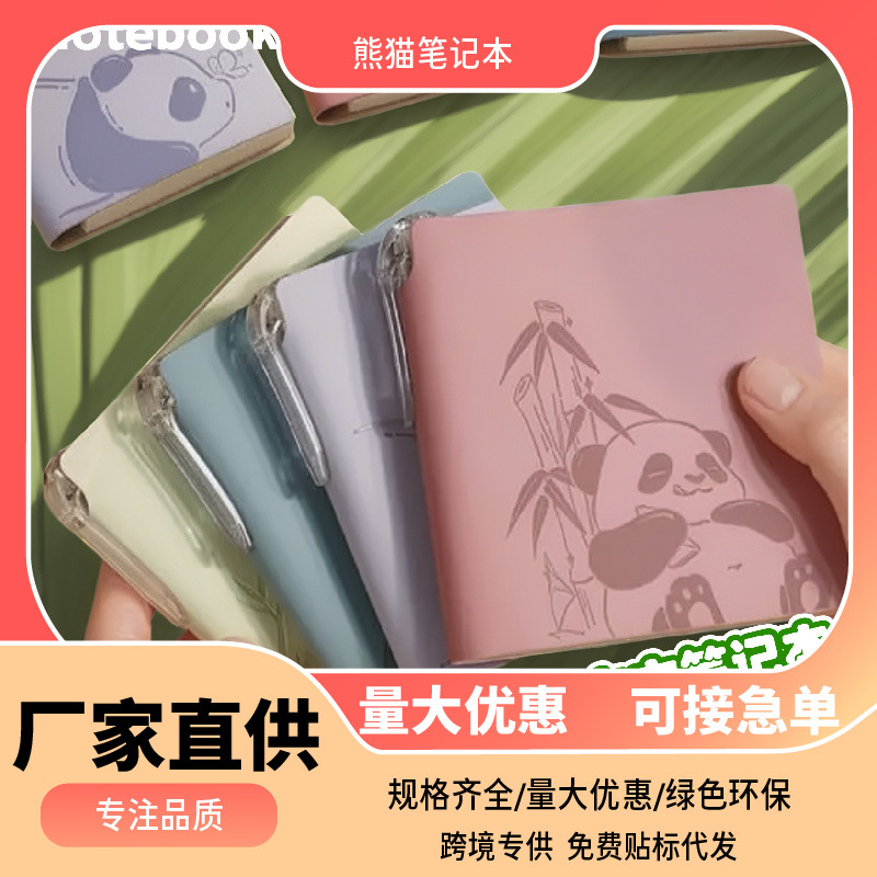 かわいいパンダ柄の正方形ノート、小型で高品質、持ち運びに便利なポケットミニノート