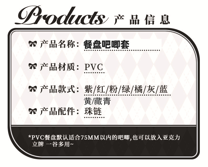 颜色 橘色餐盘【送珠链】,粉色餐盘【送珠链】,绿色餐盘【送珠链】,紫色餐盘【送珠链】,蓝色餐盘【送珠链】,红色餐盘【送珠链】,灰色餐盘【送珠链】,黄色餐盘【送珠链】,藏青色餐盘【送珠链】