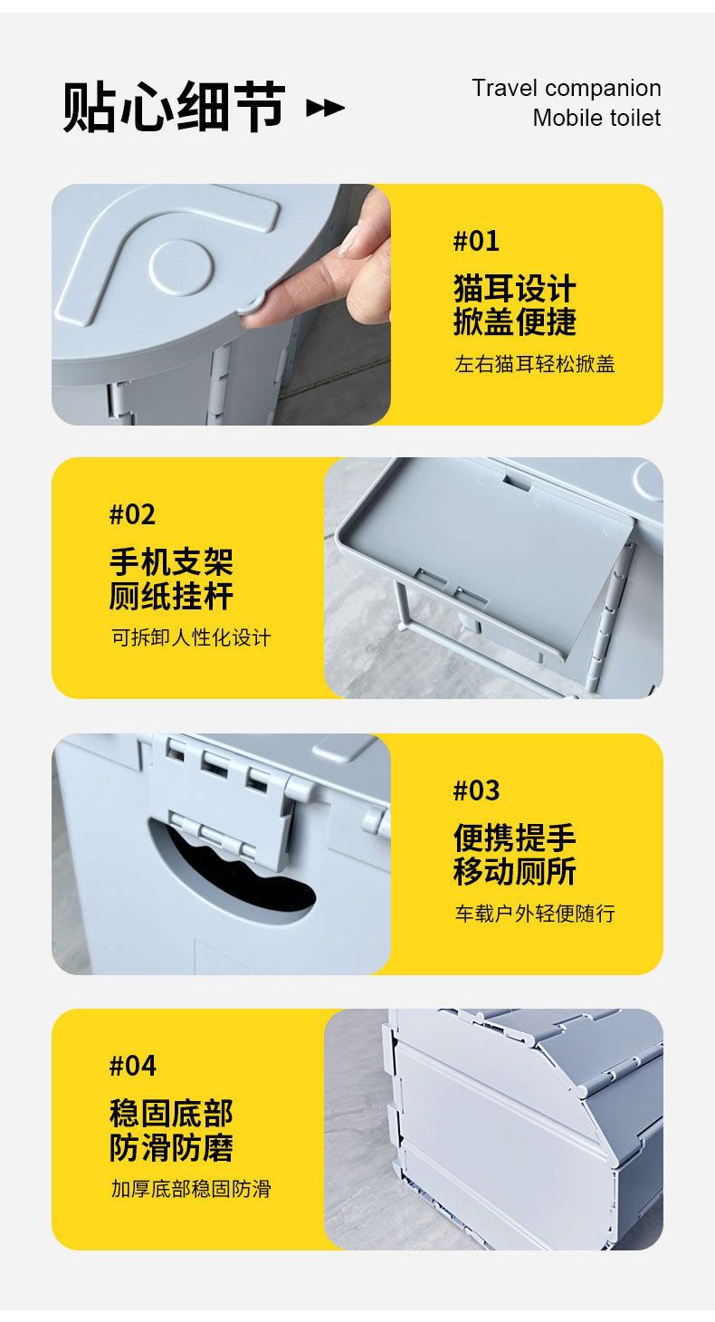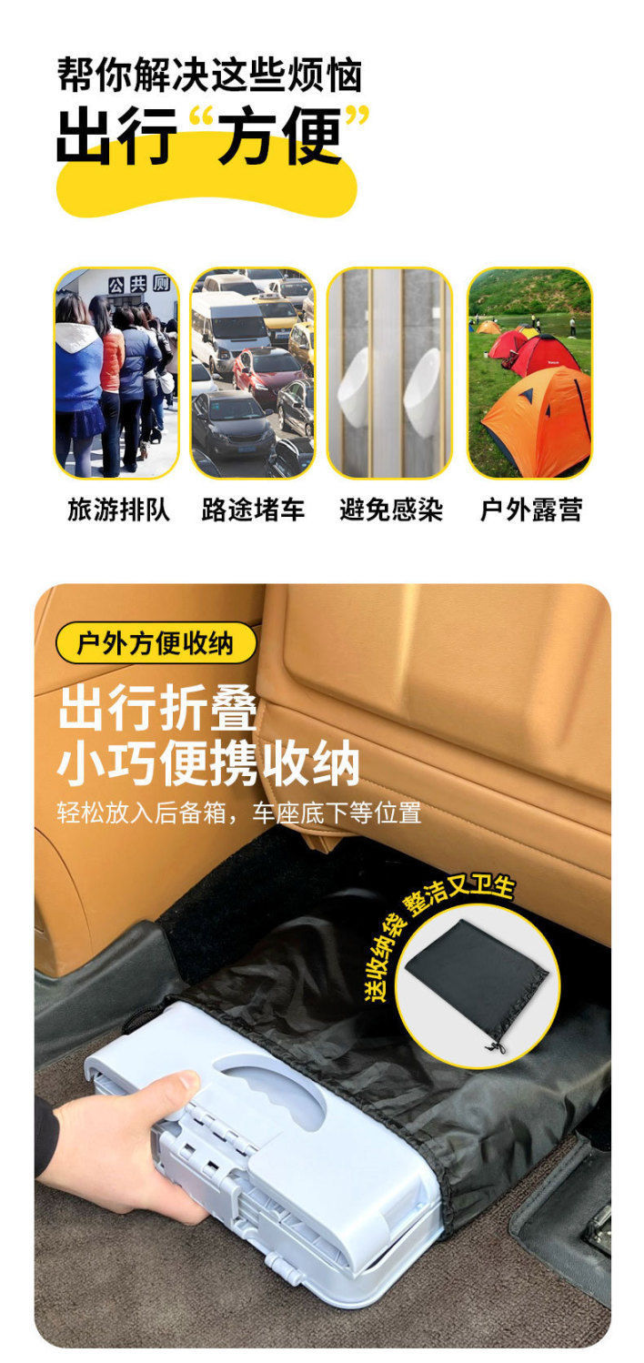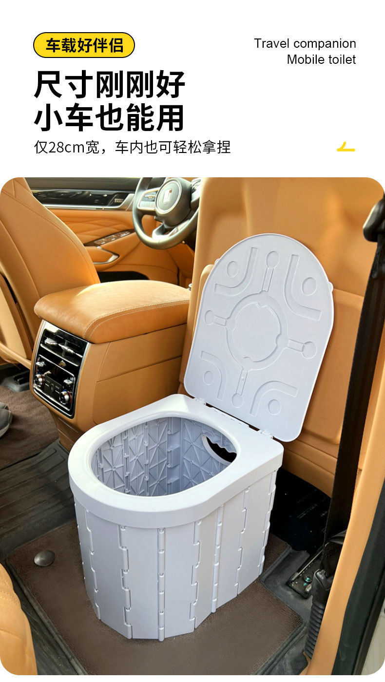 新车载便携式折叠马桶户外露营长途旅行自驾游移动应急坐便器带盖