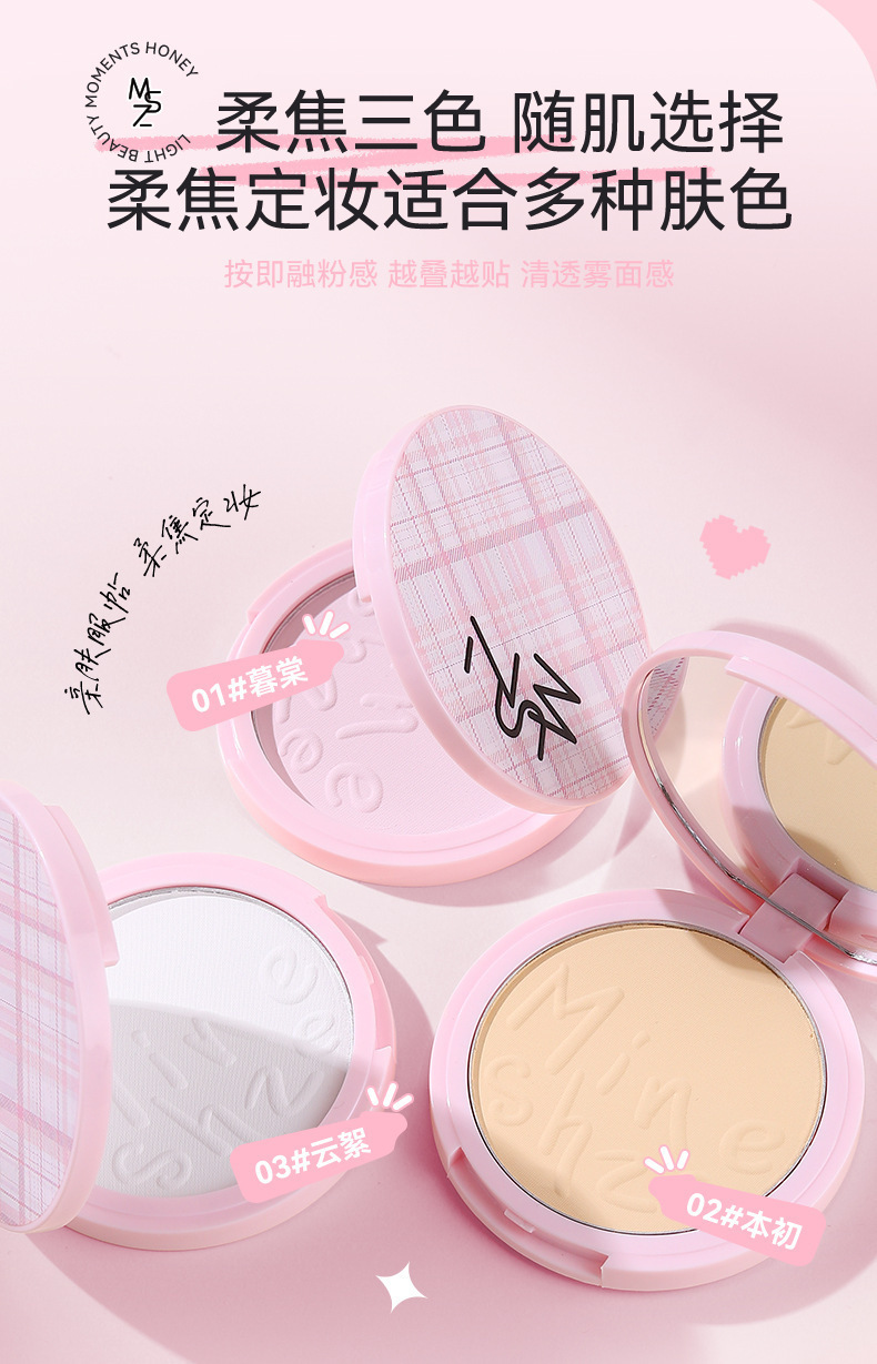 茗希芝柔焦定妆粉饼自然补妆不卡粉防水防汗持久遮瑕控油蜜粉9008
