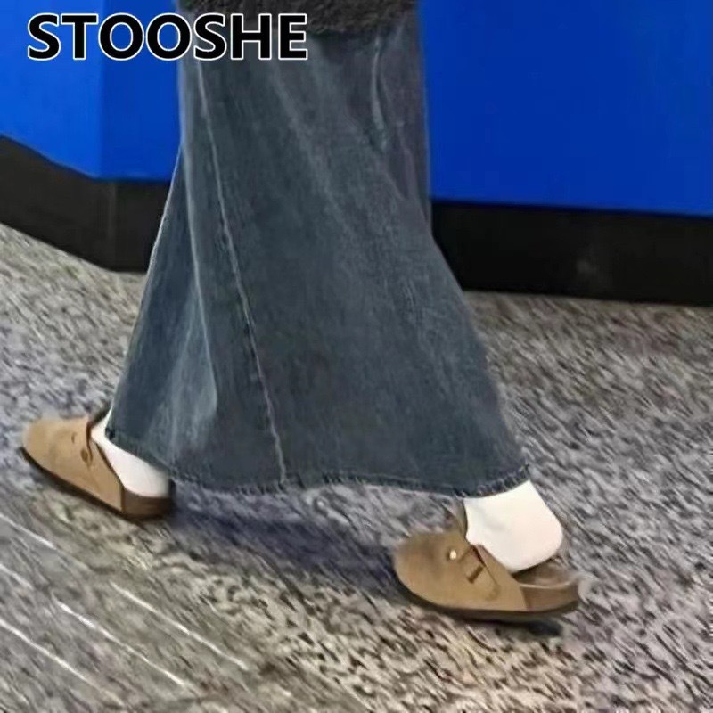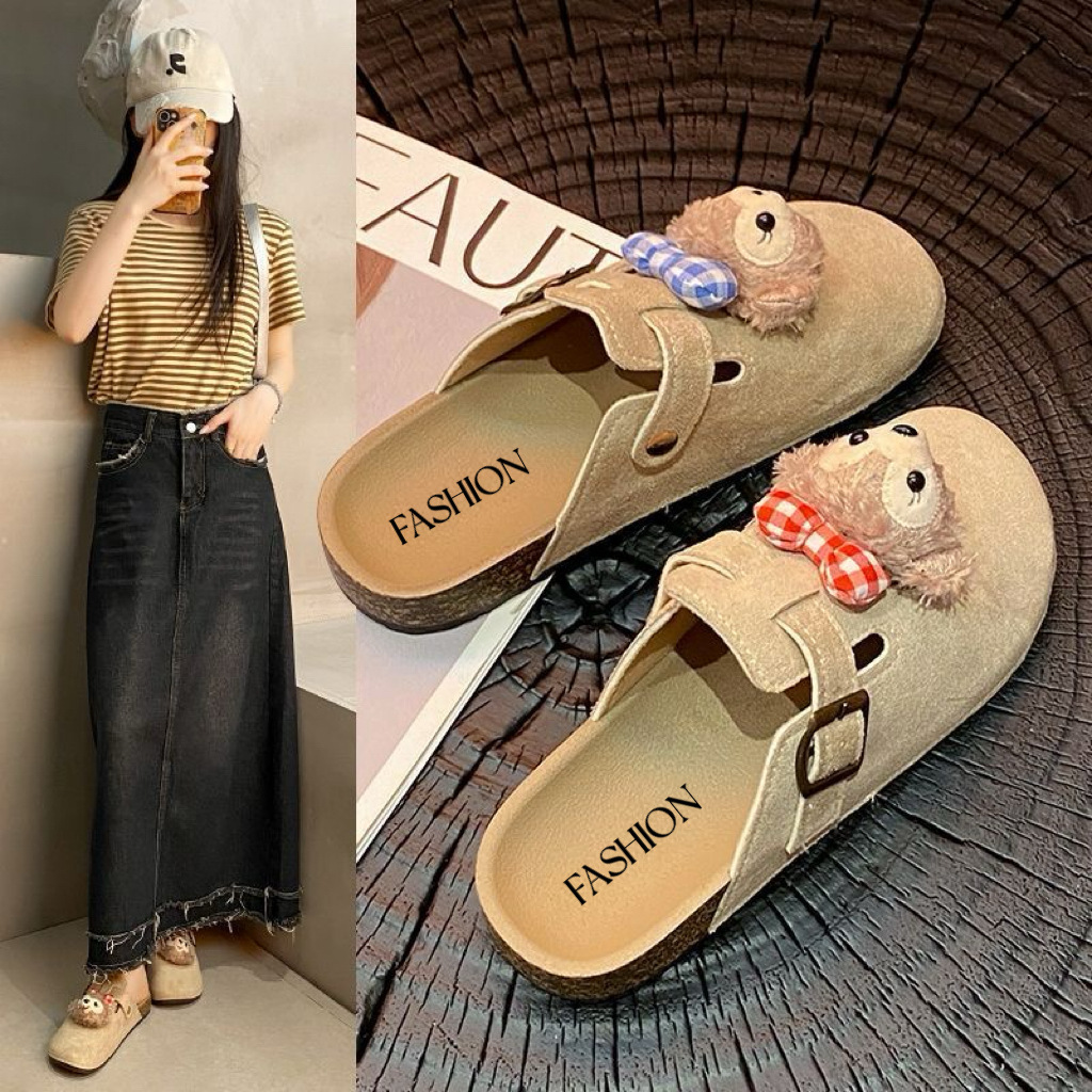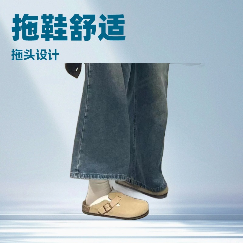 2025新款女秋冬英伦厚底勃肯鞋休闲半拖时尚百搭耐穿包头拖鞋批发
