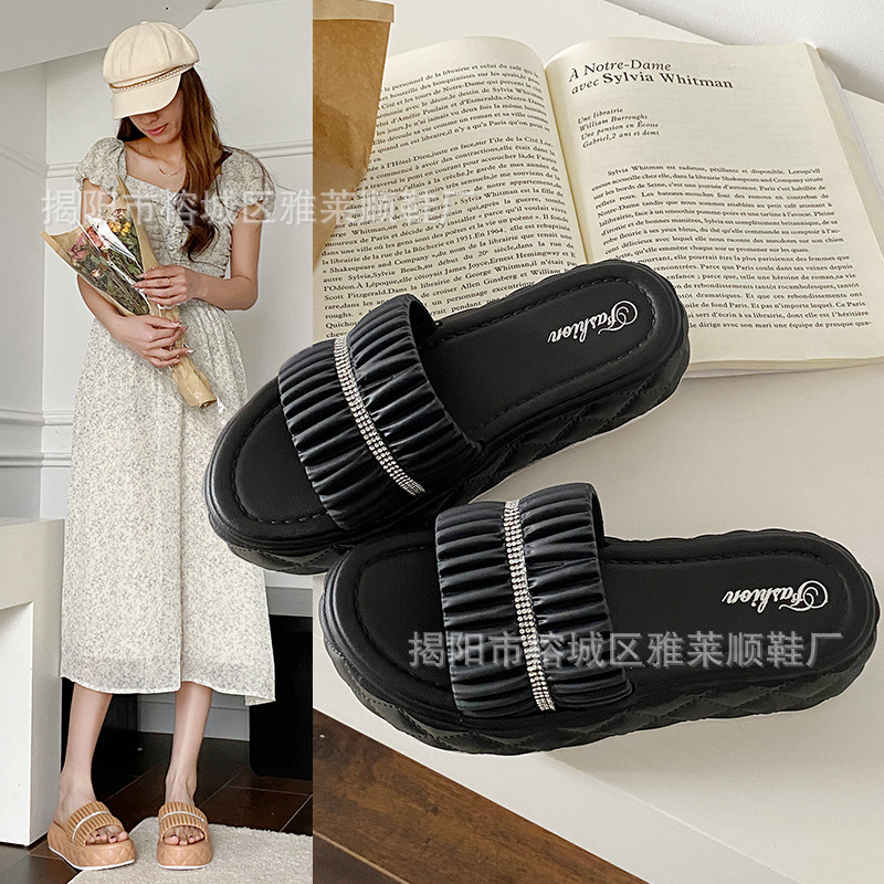 ファッションのしわのスリッパ2023の新商品は韓国版の菱格の女性のスリッパの滑り止めの女性のタイプのサンダルの卸売りに乗ります。