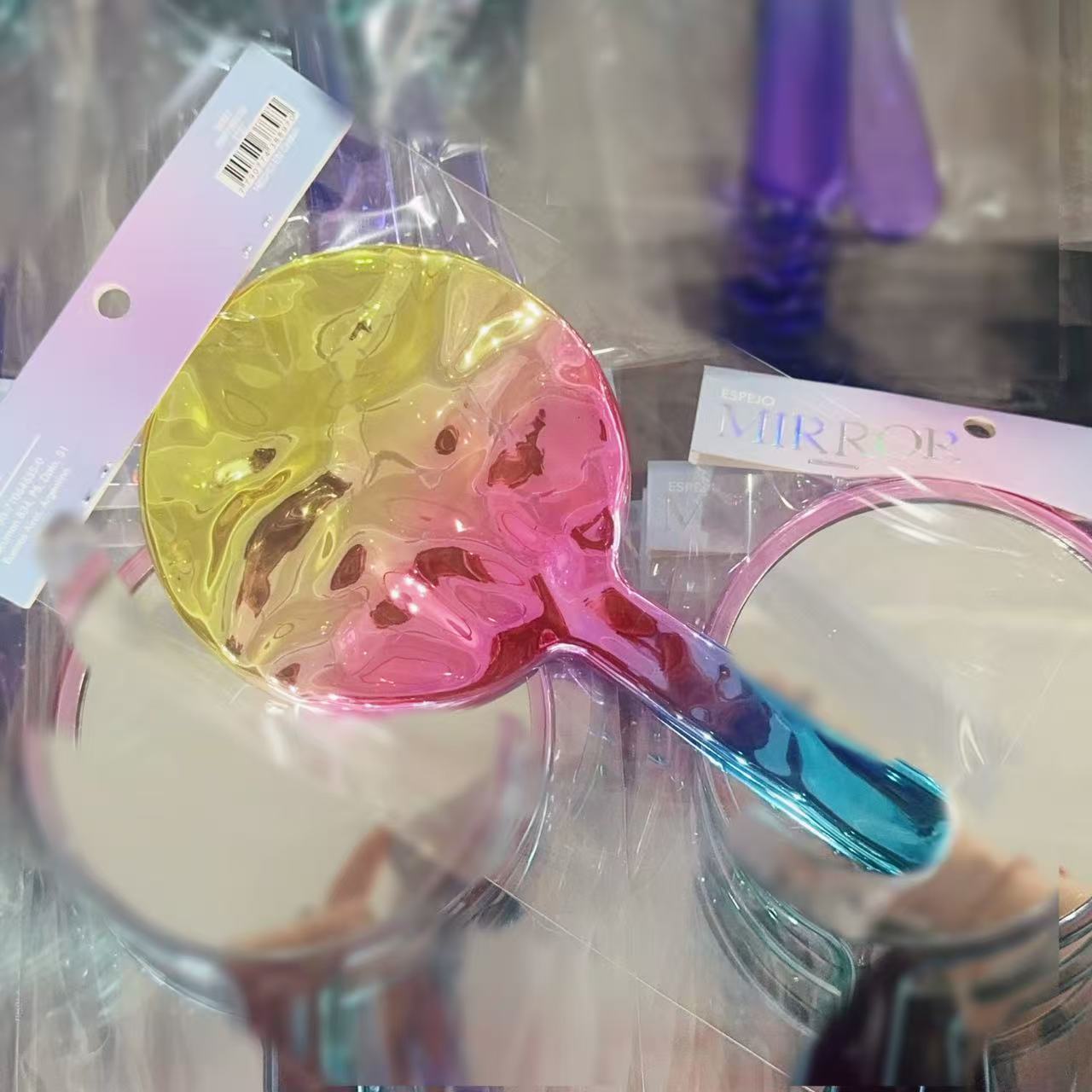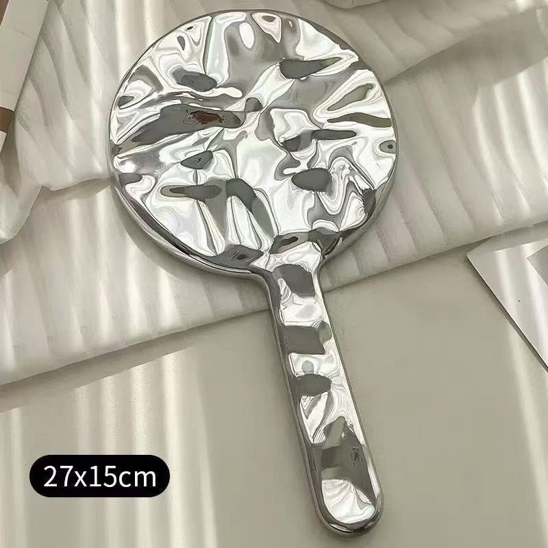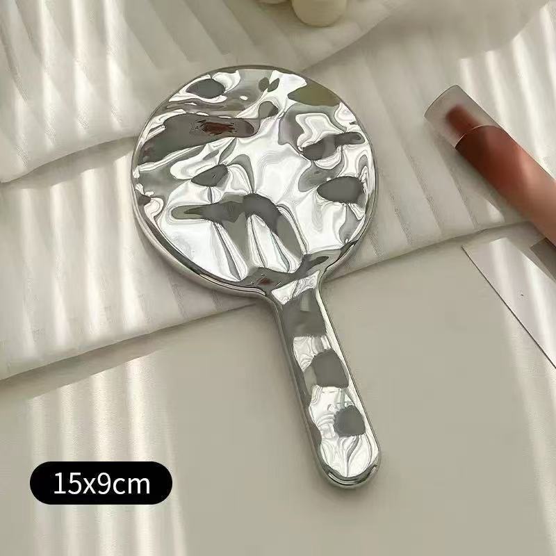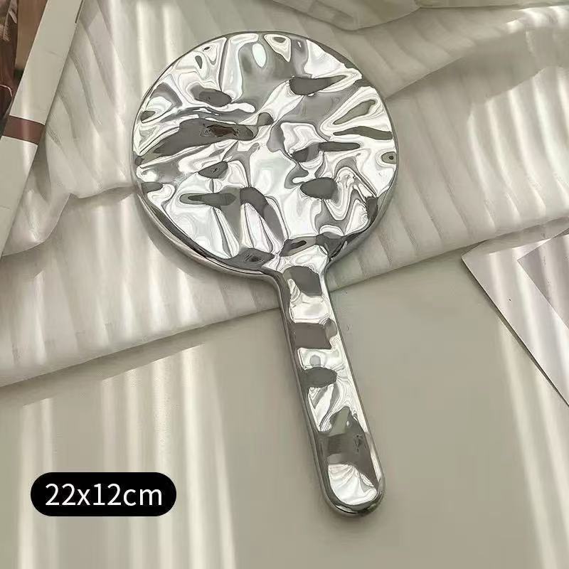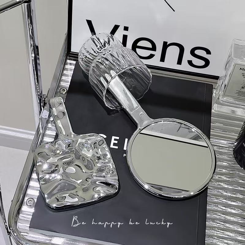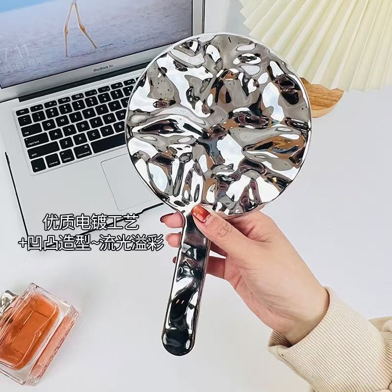新しい愛電気メッキ水波紋ミラーポータブル女の子ハンドヘルドミラーかわいい高精細ミラー化粧鏡