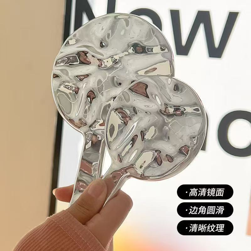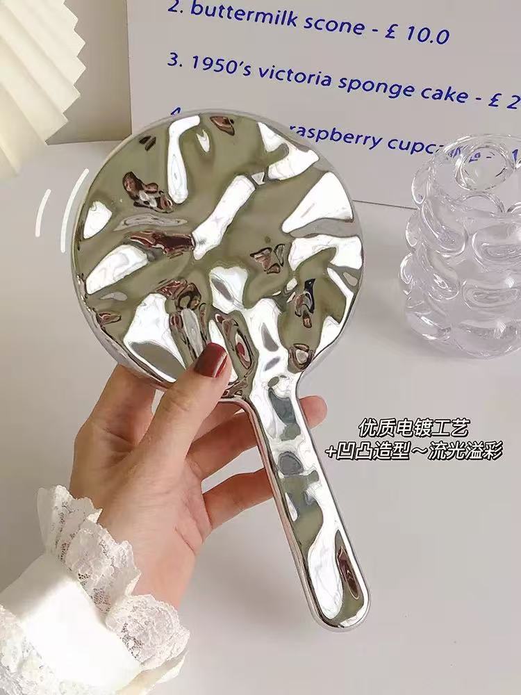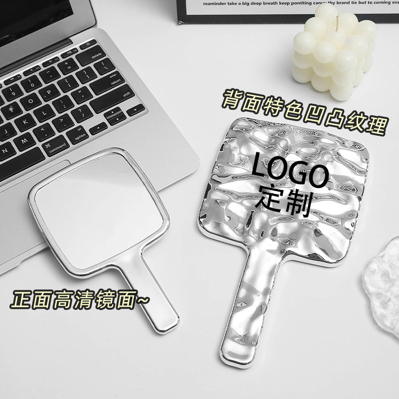 电镀水波纹高级感手持便携简约金色高清质感镜子手柄镜化妆镜