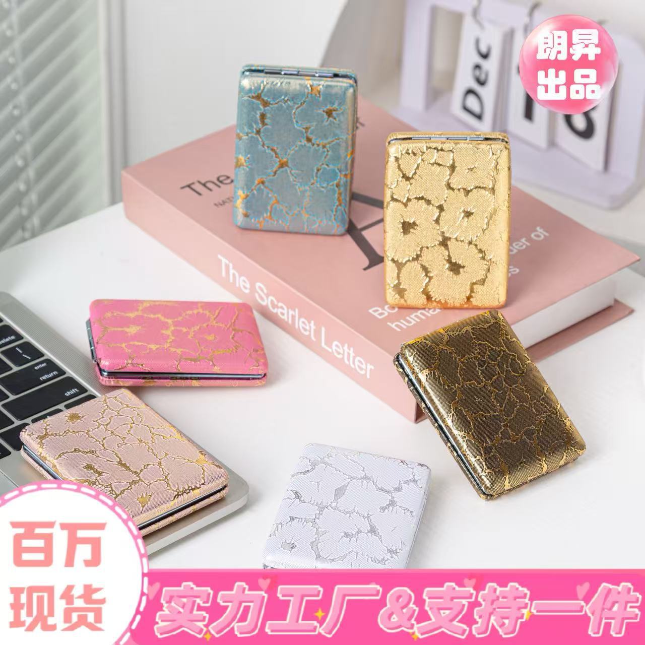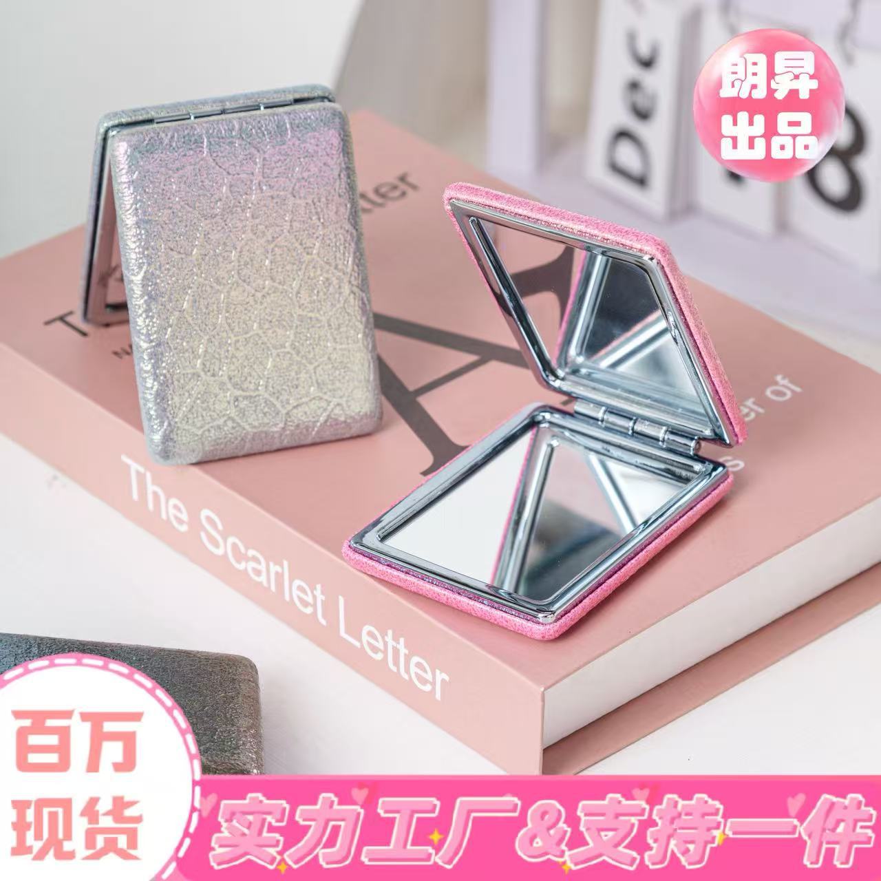 化妆镜双面镜闪光PU皮迷你长方形折叠口袋镜手持跨境补妆随身礼品