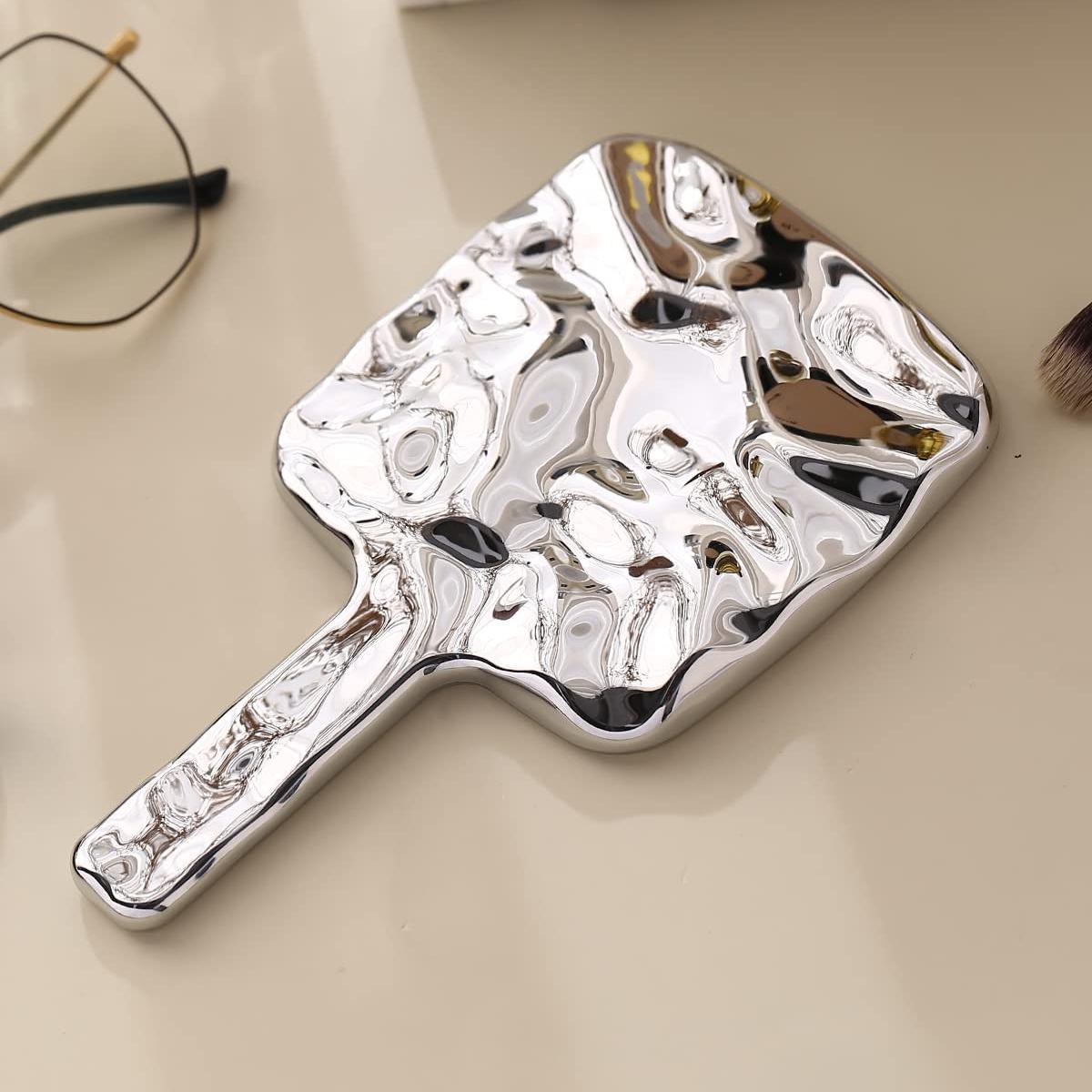 電気メッキハンドヘルドミラー、高級感と高級感のあるDIYレトロプリンセススタイルのポータブルドーパミン大型ハンドミラー