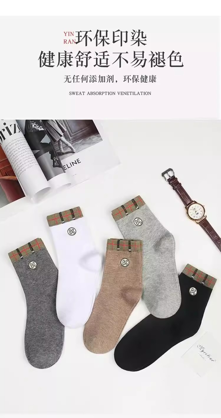 男士新款商务袜子罗口菱格男袜四季中筒吸汗防臭运动袜透气休闲袜